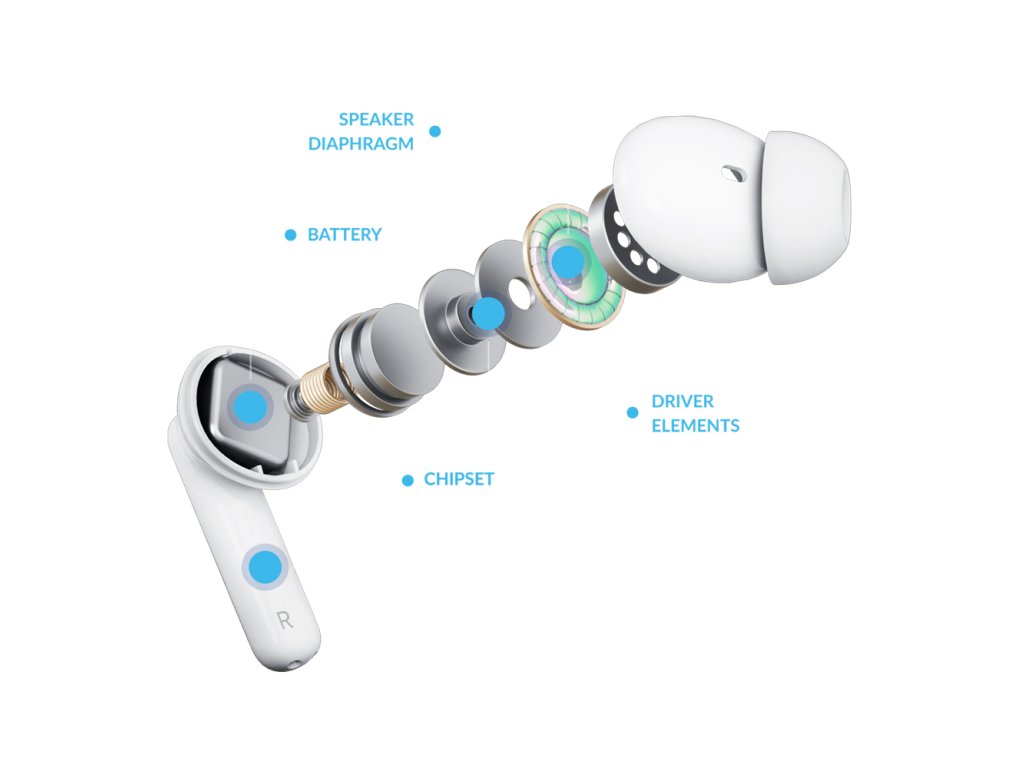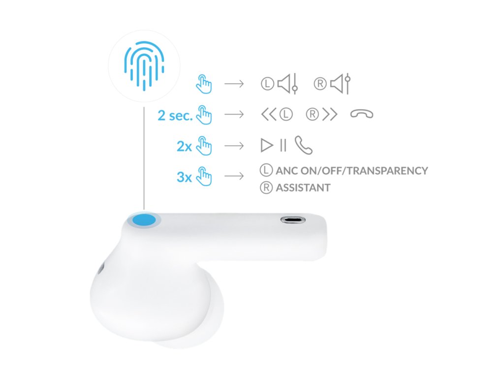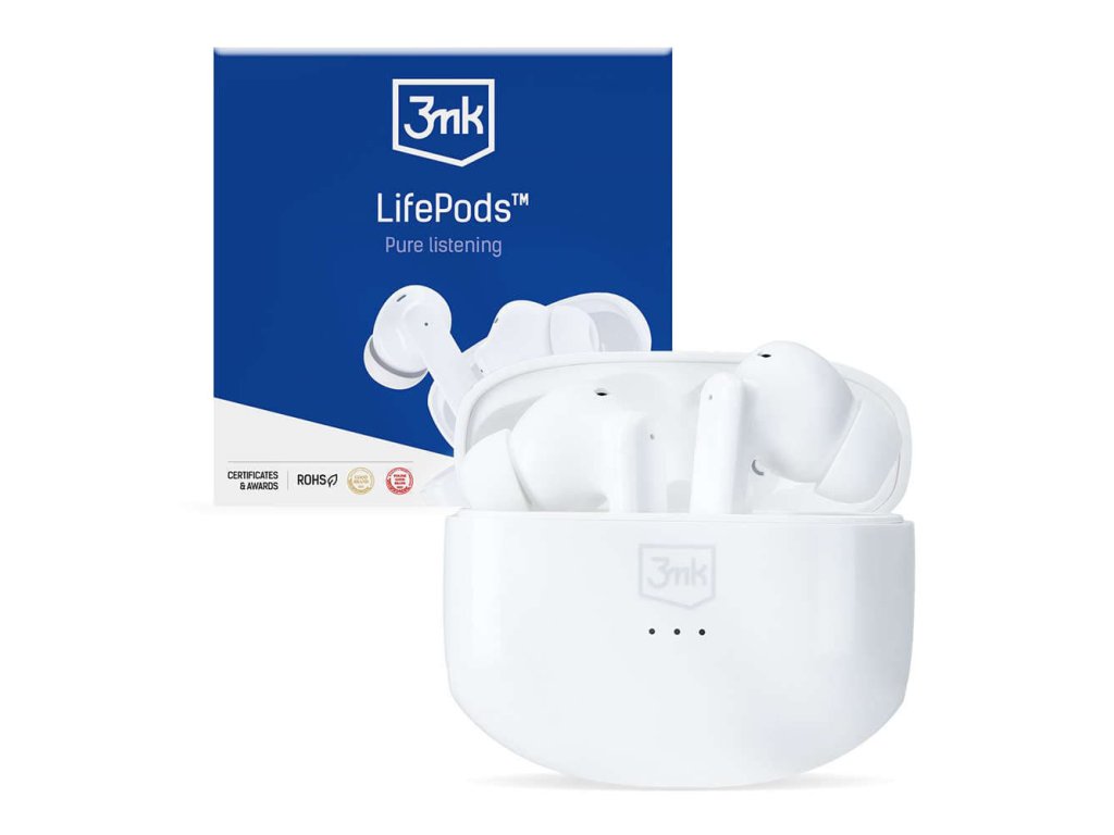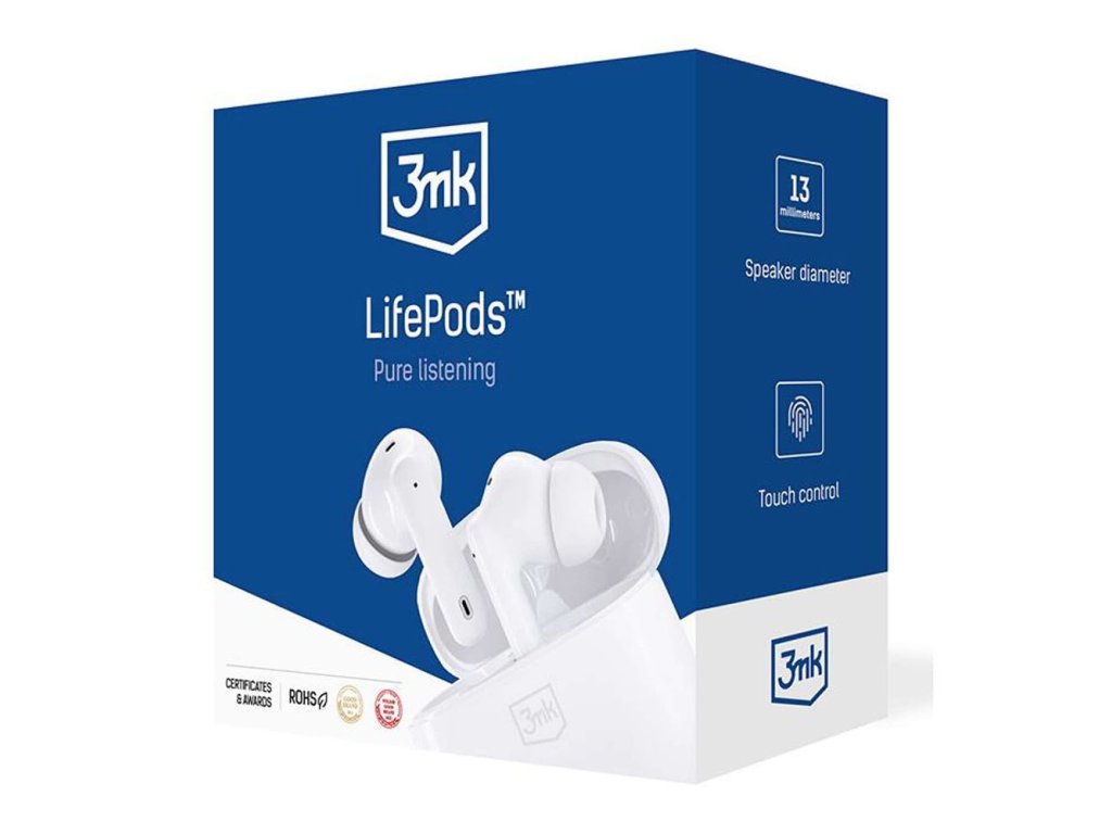 3mk - Bezdrôtové slúchadlá LifePods – Bluetooth V5.3, technológia ANC, dotykové ovládanie – biele
