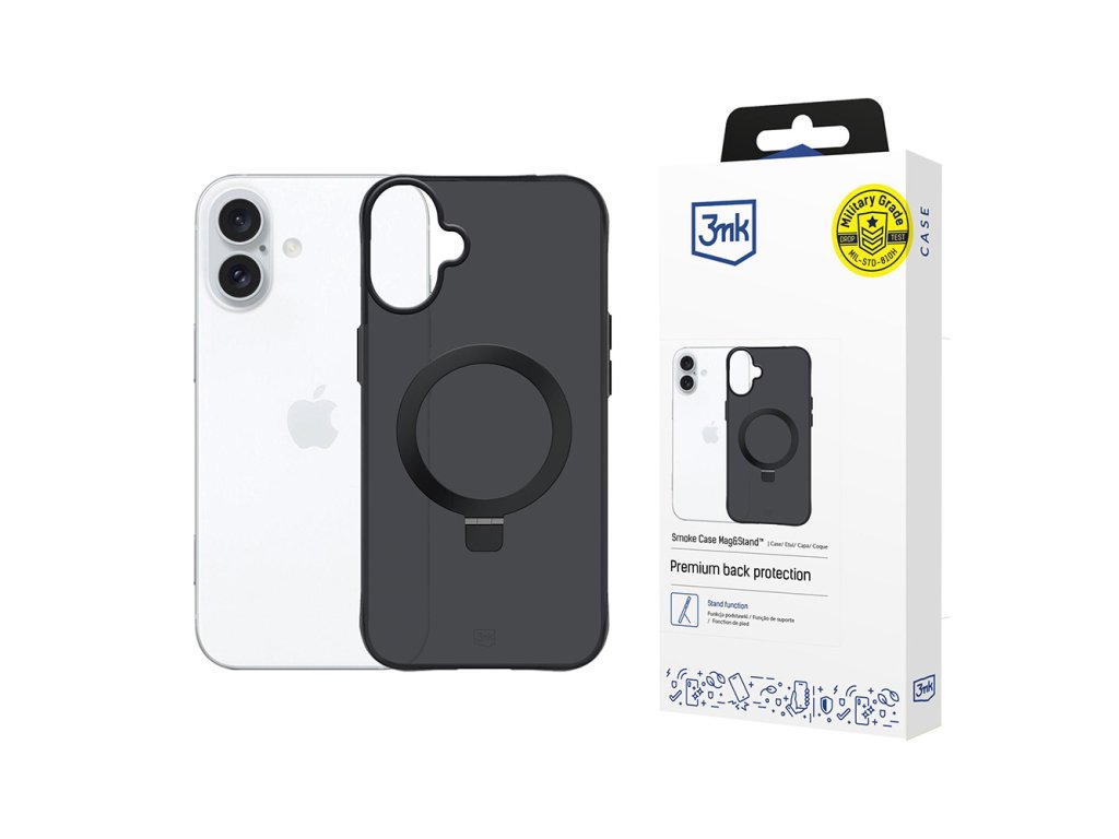 3mk - Smoke Case Mag&Stand kryt s MagSafe a stojanom pre iPhone 17 – čierny