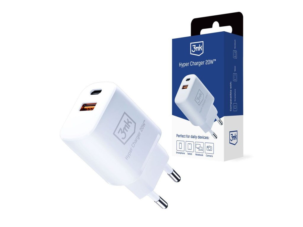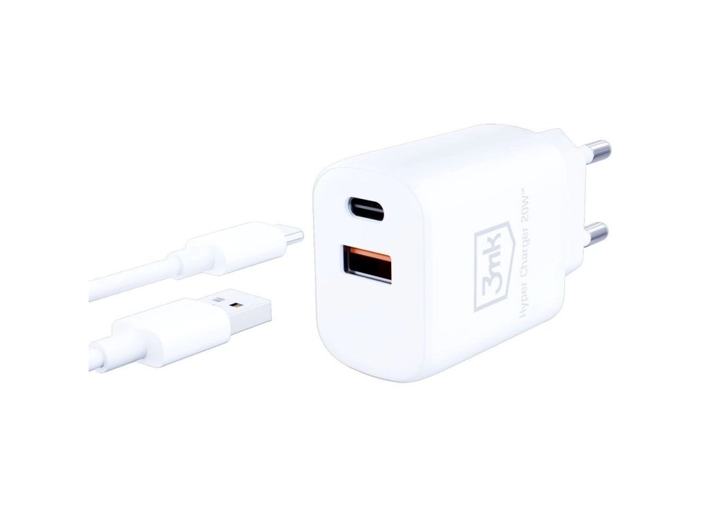 3mk - Wall Charger Hyper sieťová nabíjačka (USB-A + USB-C, 20W, Power Delivery & Quick Charge) - biela