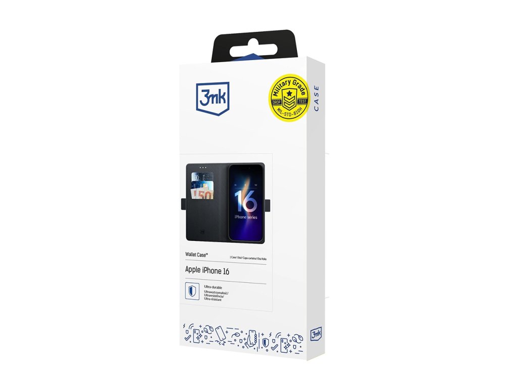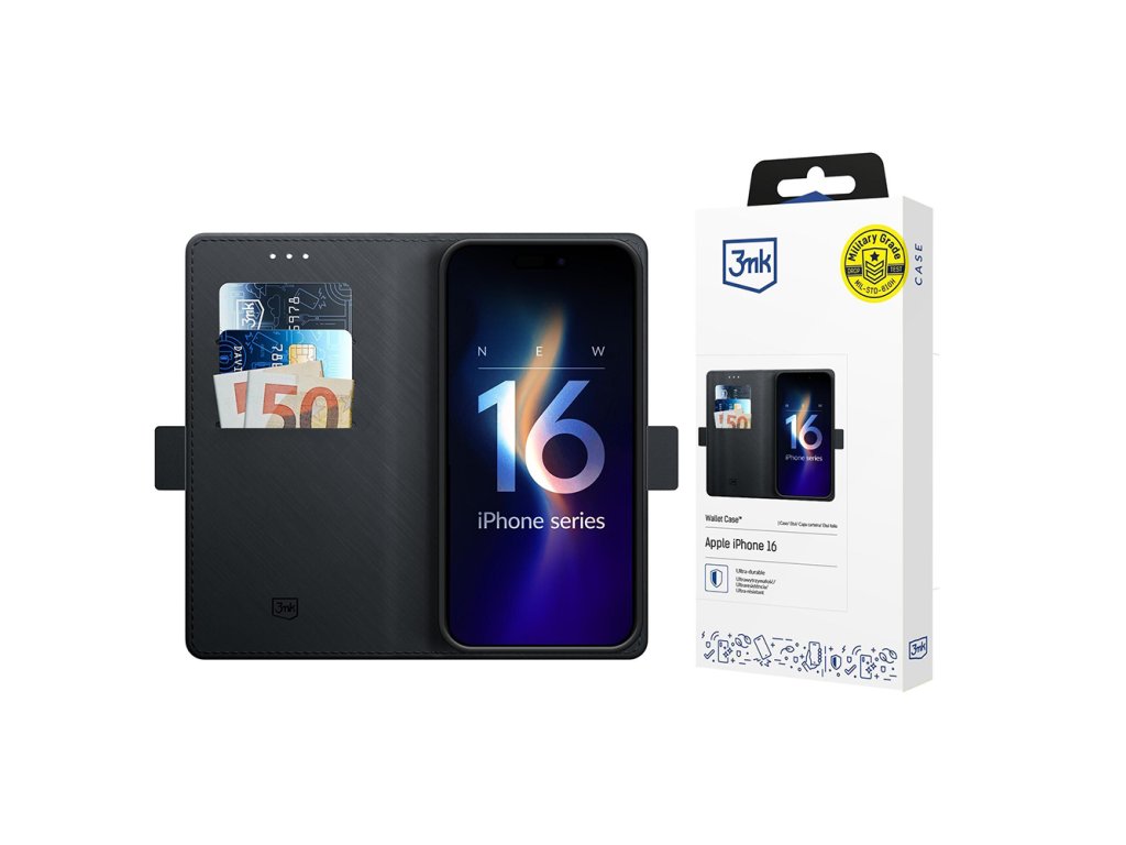 3mk - Wallet Case puzdro na iPhone 16 – čierne