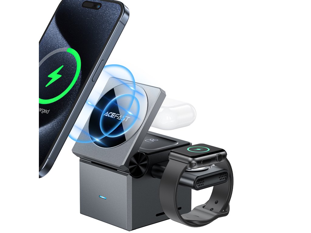 Ktorá umožňuje nabíjanie smartfónu, Apple Watch a slúchadiel TWS súčasne. Objednaj si práve teraz bezdrôtovú nabíjaciu stanicu od Acefast!