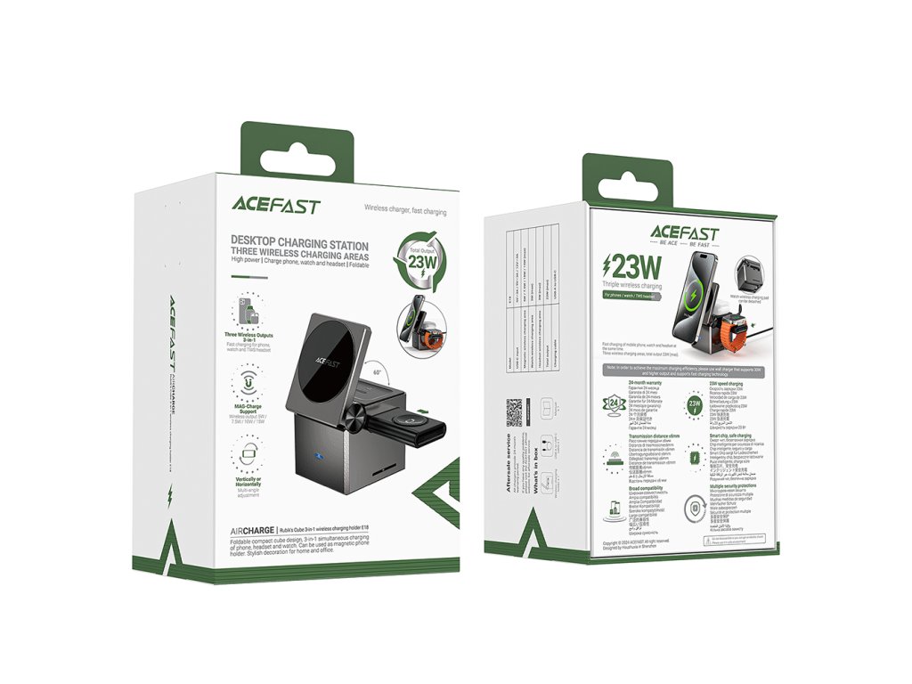 Acefast - Charging Station Rubik's Cube 3in1 skladacia nabíjacia stanica pre telefón, TWS slúchadlá a Apple Watch, 23 W – sivá metalická