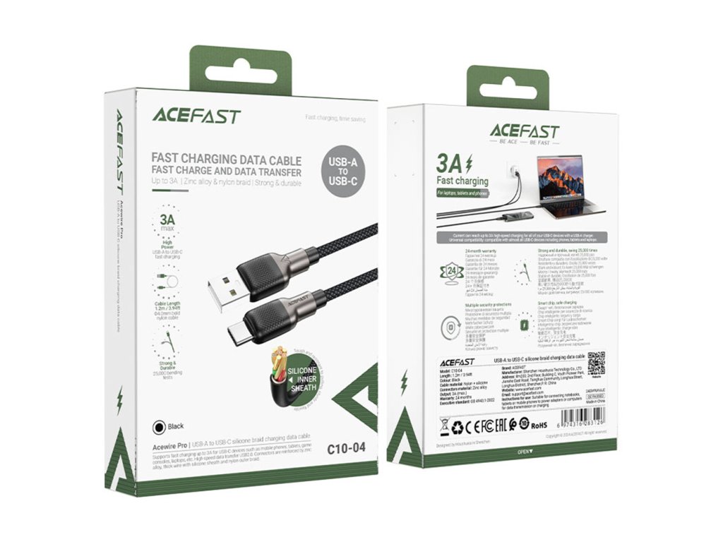 Acefast - Data Cable dátový a nabíjací kábel USB na USB-C Fast Charge 3 A, odolný silikón (25 000 ohybov), 1,2 m – čierny