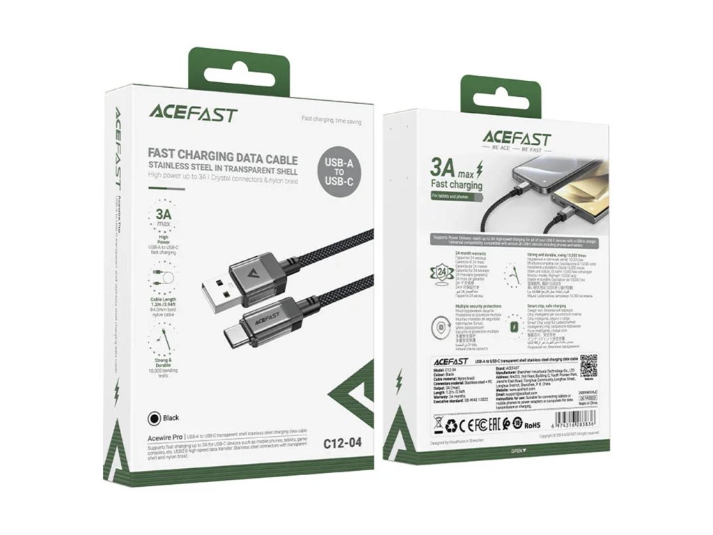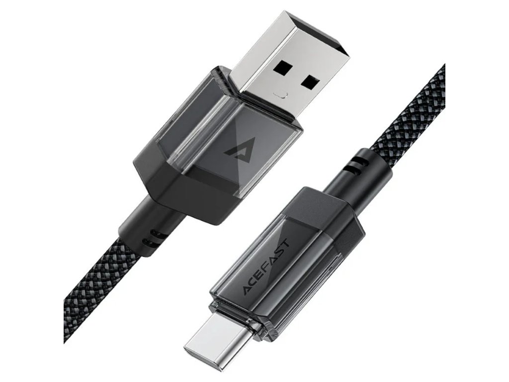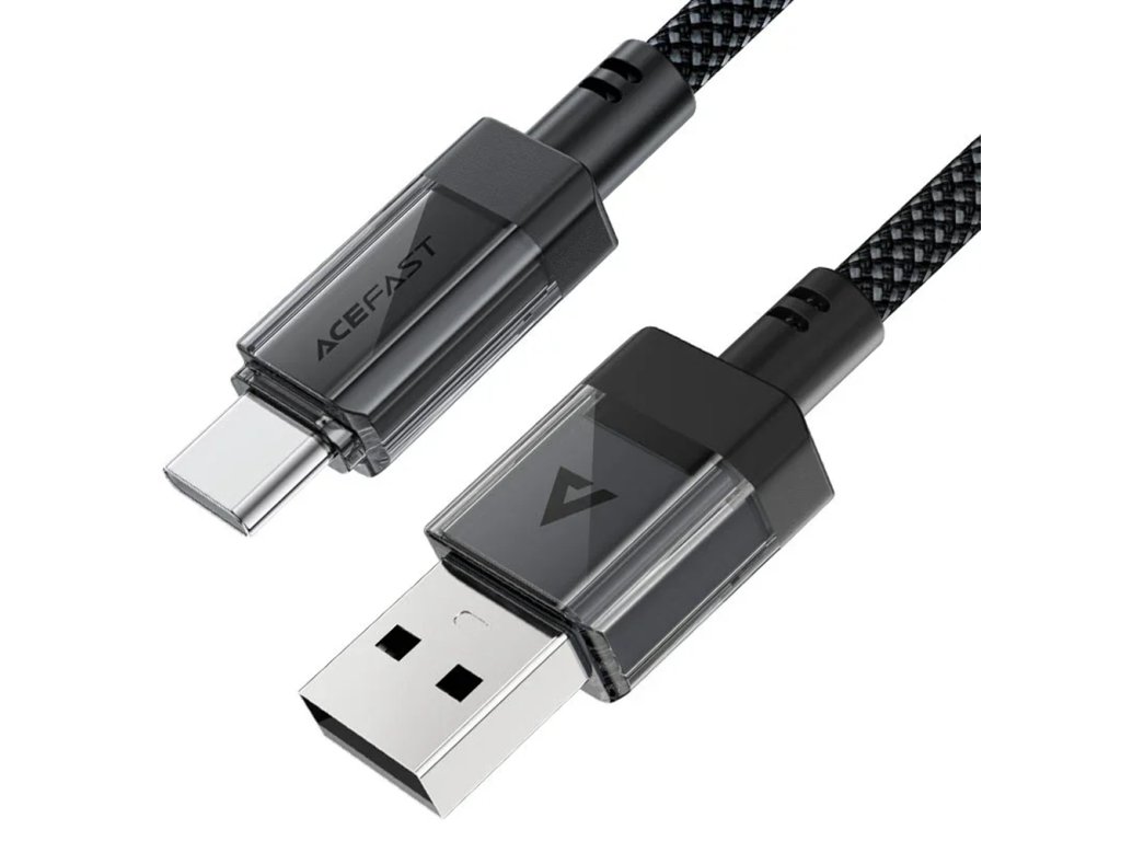 Acefast - Data Cable dátový a nabíjací kábel USB na USB-C Fast Charge 3 A s priehľadným telom, nylonové opletenie, 1,2 m – čierny