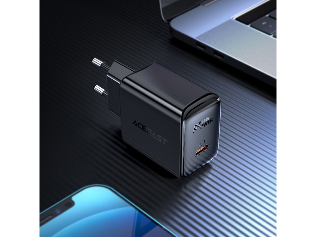 Acefast - Wall Charger A1 sieťová nabíjačka (rýchlonabíjanie, USB-C, PD20W, QC3.0, 5V/2.4A, Smart Chip, V0 ochrana) - čierna