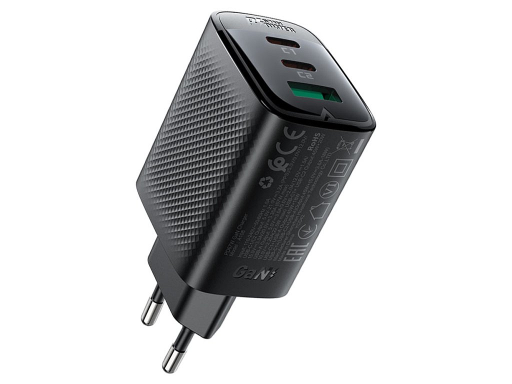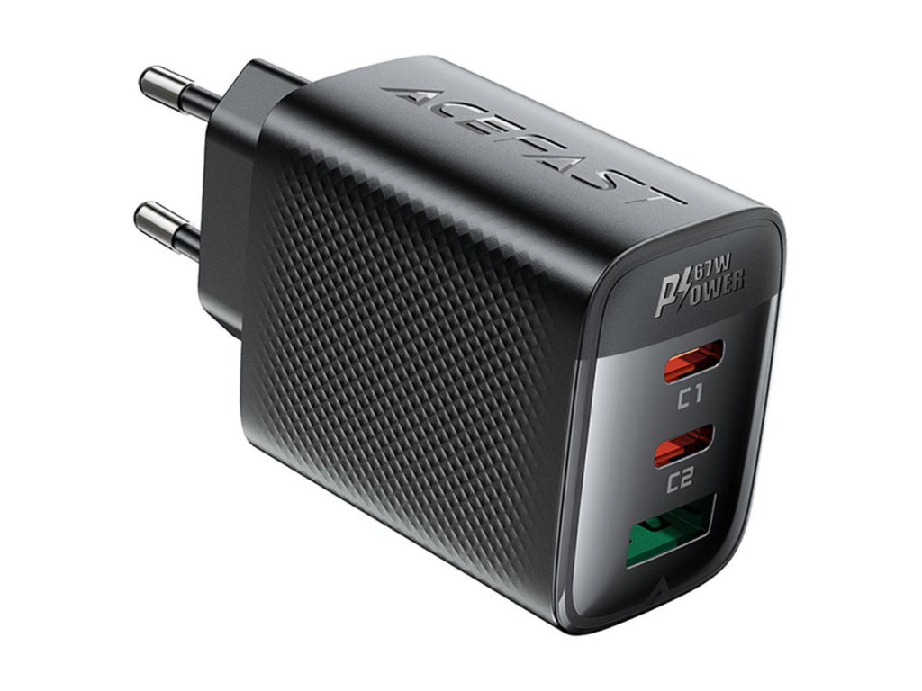 Acefast - Wall Charger A108 sieťová nabíjačka (GaN technológia, rýchlonabíjanie, 2× USB-C, USB, 67W, 3A, Smart Chip) - čierna