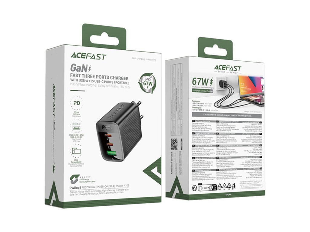 Vďaka technológii GaN je nabíjačka Type-C Acefast kompaktnejšia, efektívnejšia a lepšie riadi teplo ako klasické nabíjačky. GaN zabezpečuje optimálnu spotrebu energie, efektívne odvádzanie tepla a bezpečnú prevádzku, ideálnu pre každodenné použitie.