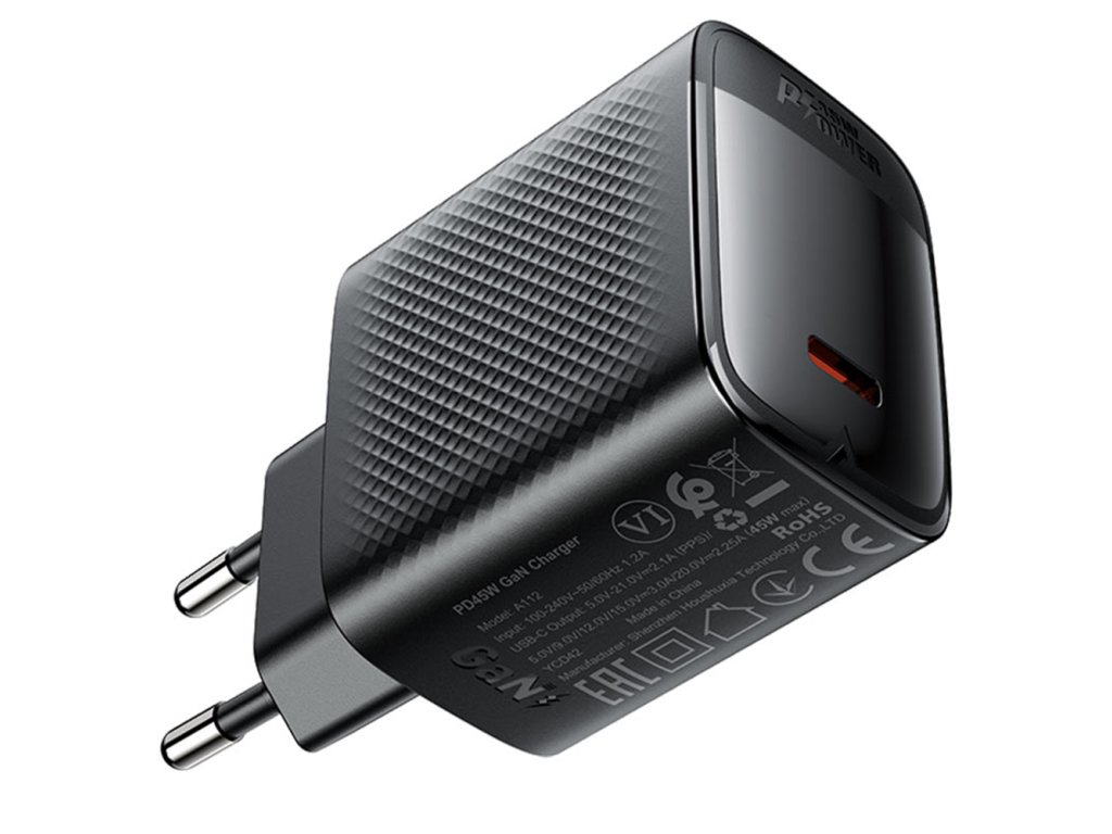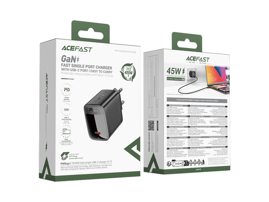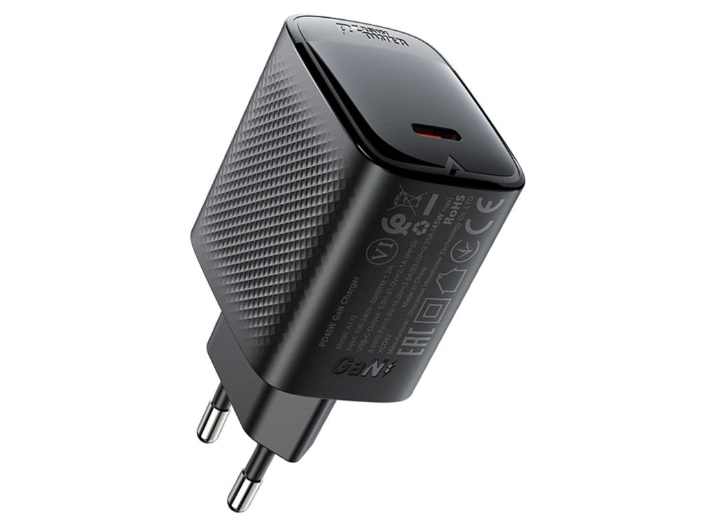 Acefast - Wall Charger A112 sieťová nabíjačka (rýchlonabíjanie, GaN technológia, USB-C, 45W, 3A, Smart Chip) - čierna