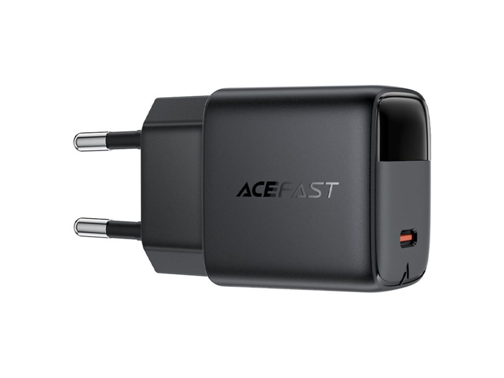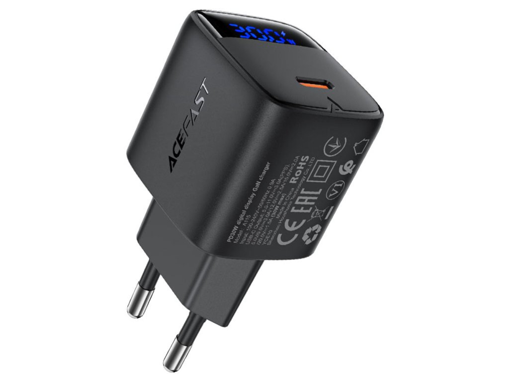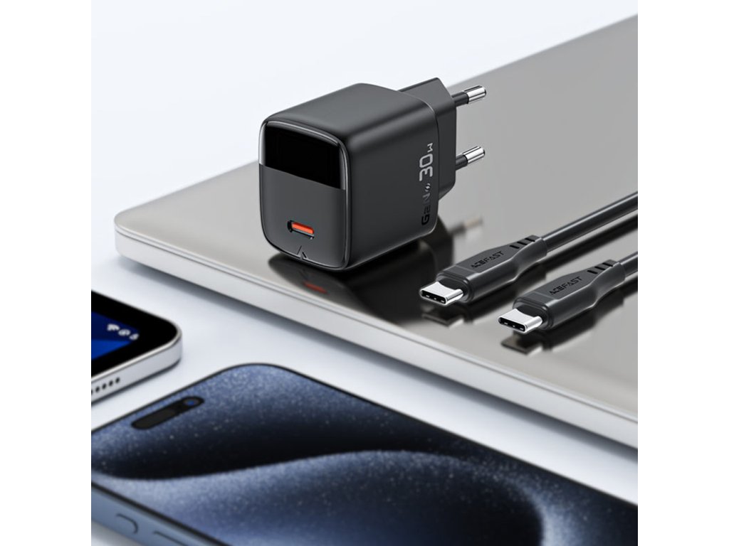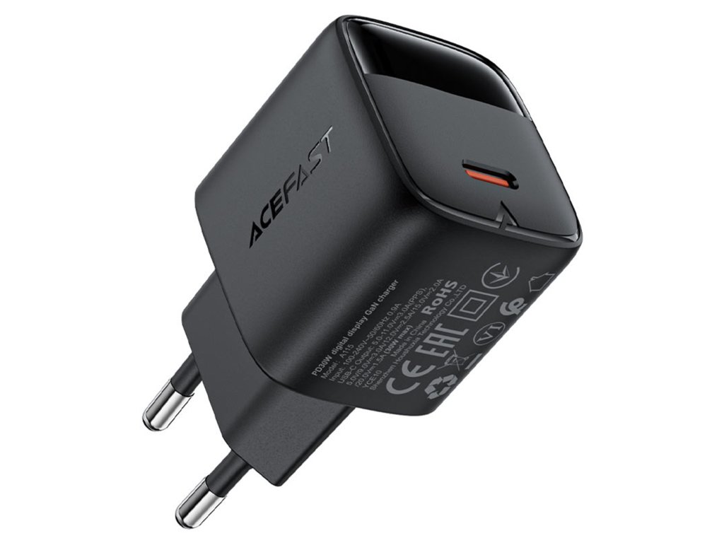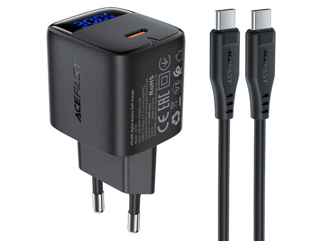 Acefast - Wall Charger A115 sieťová nabíjačka (digitálny displej, rýchlonabíjanie, GaN technológia, USB-C, PD30W, USB-C kábel 1.2 m) - čierna
