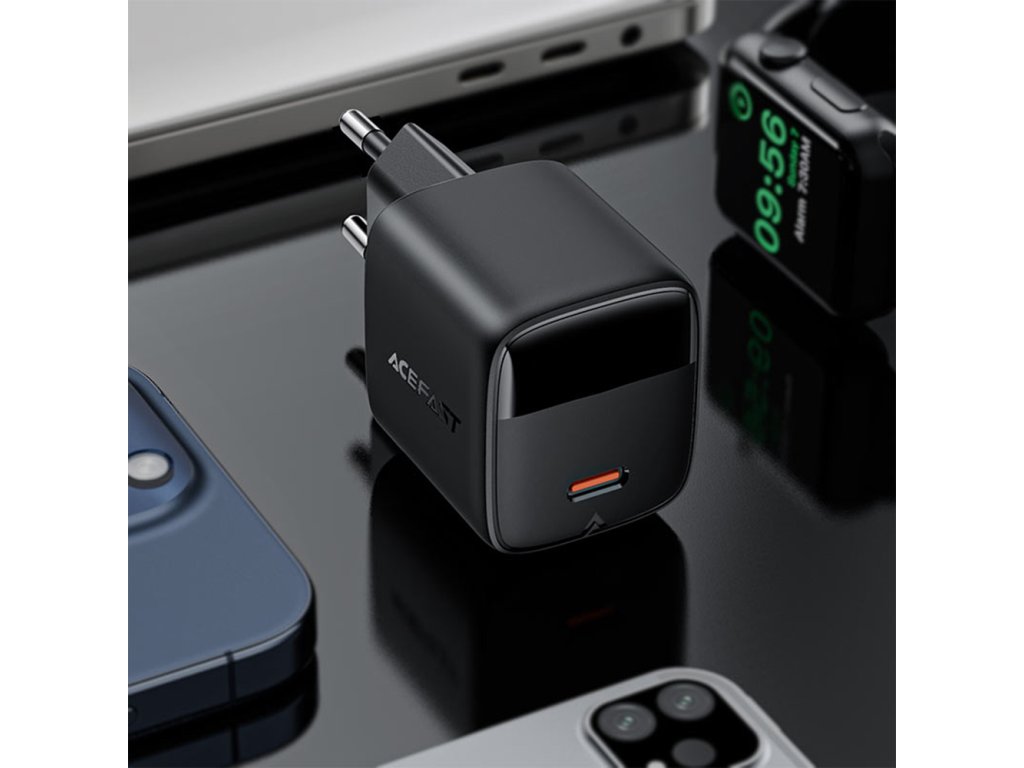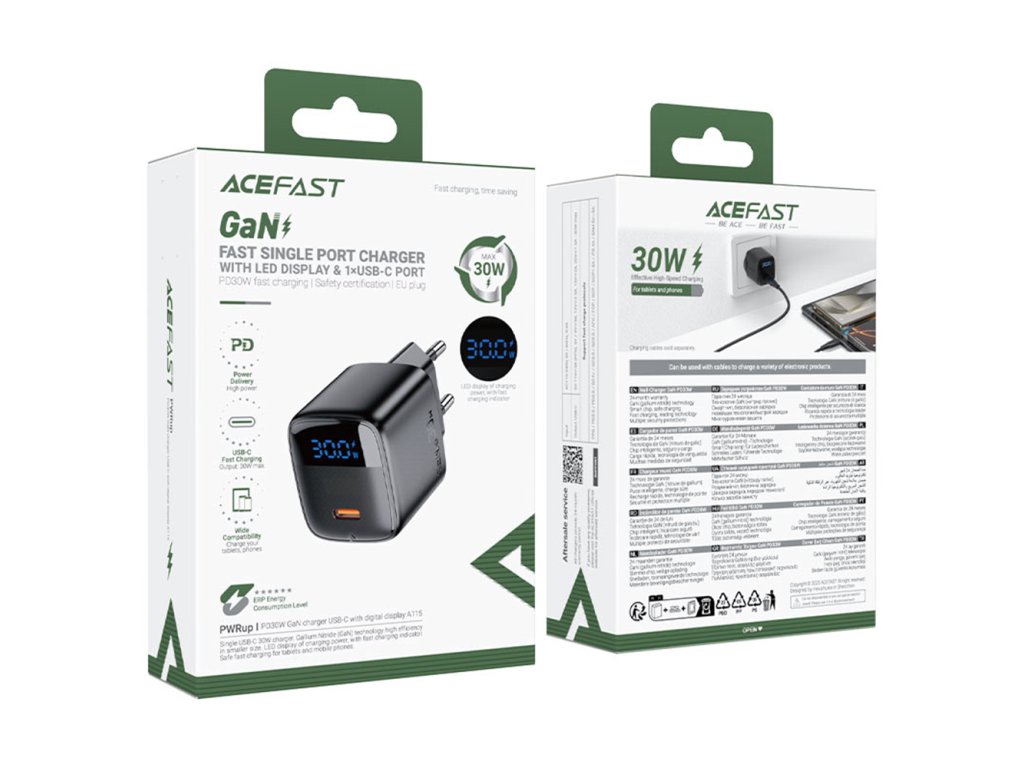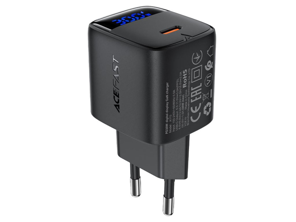 Acefast - Wall Charger A115 sieťová nabíjačka (digitálny displej, rýchlonabíjanie, GaN technológia, USB-C, PD30W) - čierna