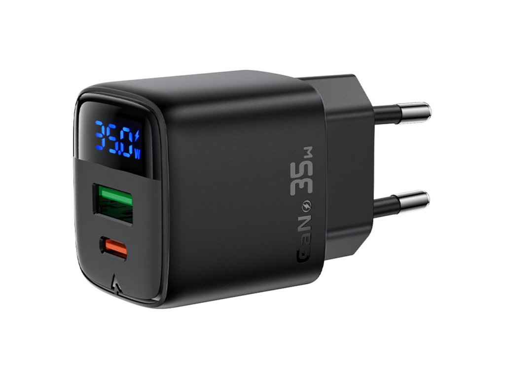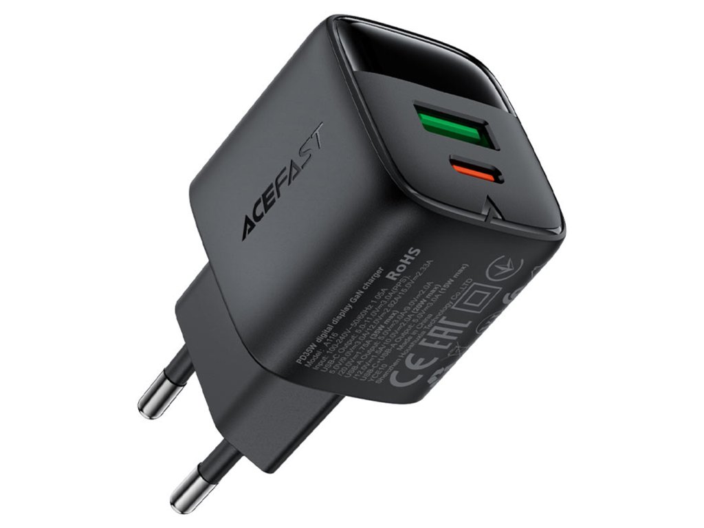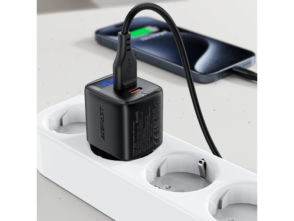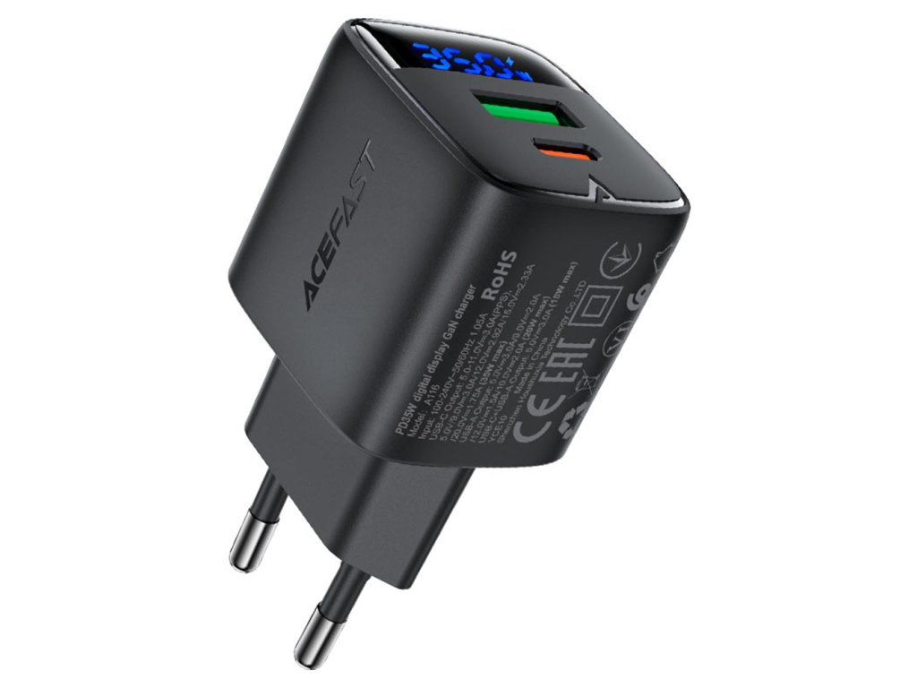 Acefast - Wall Charger A116 sieťová nabíjačka (digitálny displej, rýchlonabíjanie, GaN technológia, USB-C + USB, PD35W) - čierna