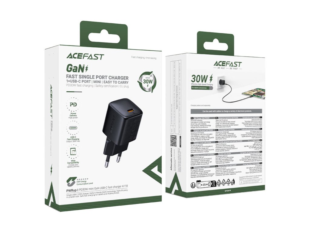Acefast - Wall Charger A118 sieťová nabíjačka (GaN technológia, PD30W, rýchlonabíjanie, mini dizajn, 1× USB-C) - čierna