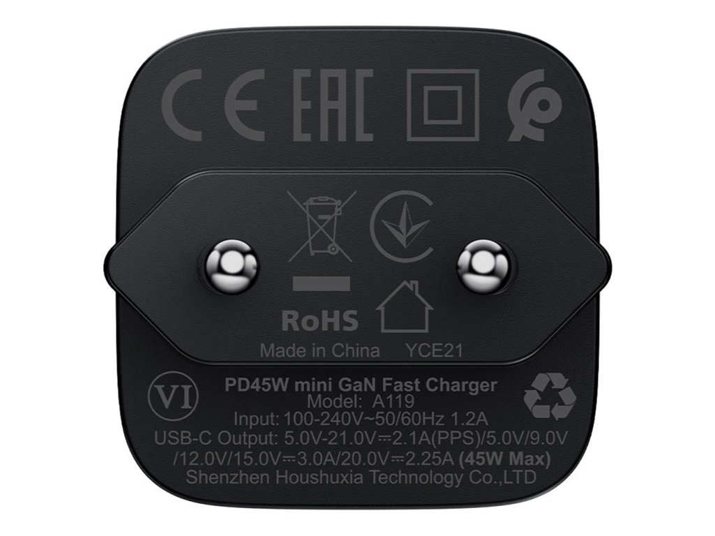 Výstupný prúd Type-C: 5-21V/2.1A (PPS), 5V/3A, 9V/3A, 12V/3A, 15V/3A, 20V/2.25A (PPS / PD3.0 / PD2.0 / QC4+ / QC3.0 / QC2.0 / AFC / FCP / SCP),