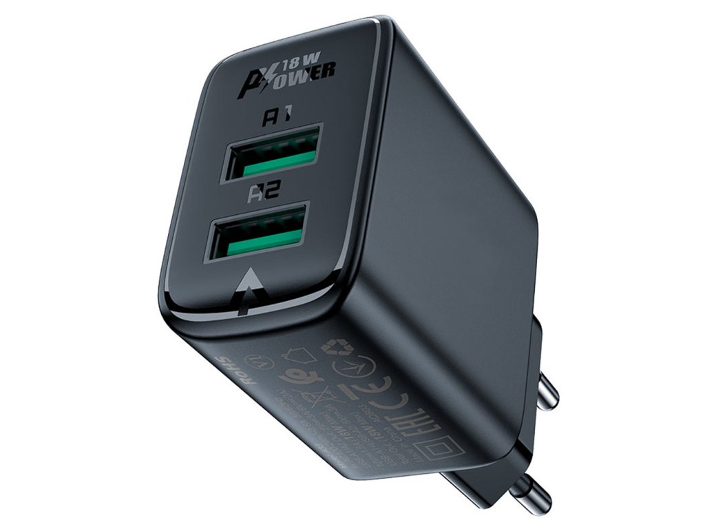 Acefast - Wall Charger A33 sieťová nabíjačka Dual Port (rýchlonabíjanie, 2× USB, QC18W) - čierna