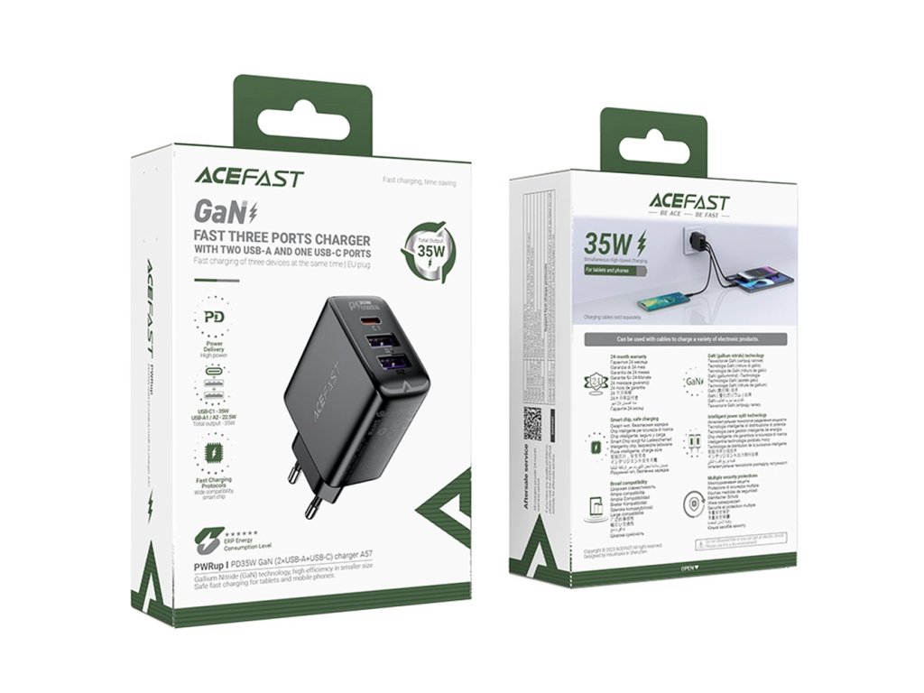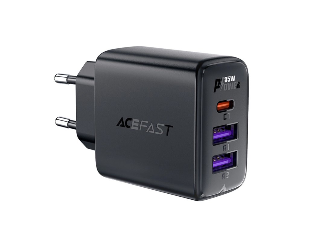 Acefast - Wall Charger A57 sieťová nabíjačka (GaN technológia, rýchlonabíjanie, 2× USB, USB-C, PD35W, Smart Chip) - čierna