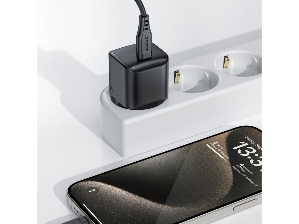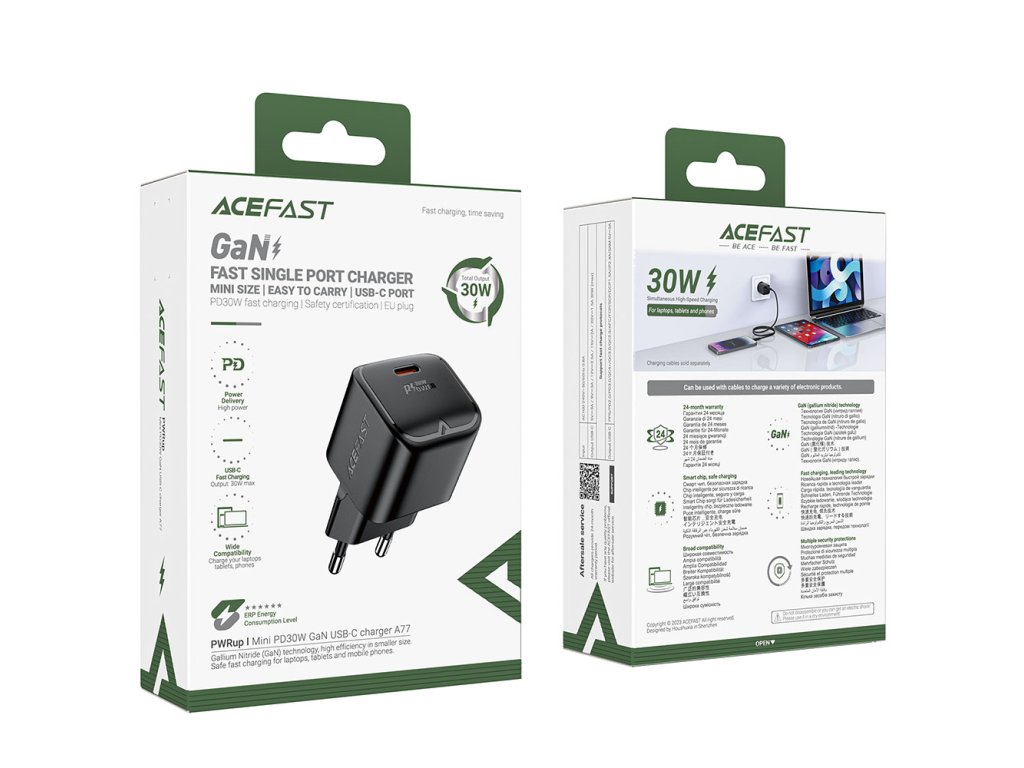 Acefast - Wall Charger A77 sieťová nabíjačka (USB-C, mini GaN, 30W, Power Delivery, rýchlonabíjanie) - čierna