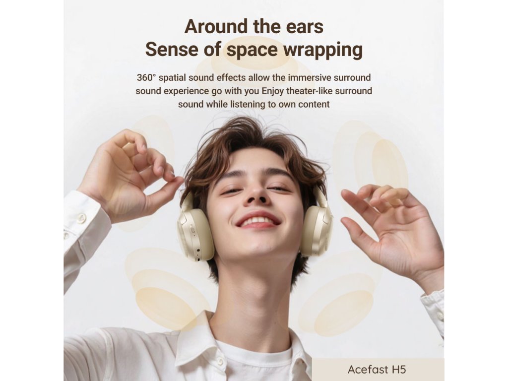Acefast - Wireless Headset bezdrôtový headset Bluetooth 5.4 s ANC, redukciou hluku a 3D zvukom, profesionálne Hi-Fi – biely