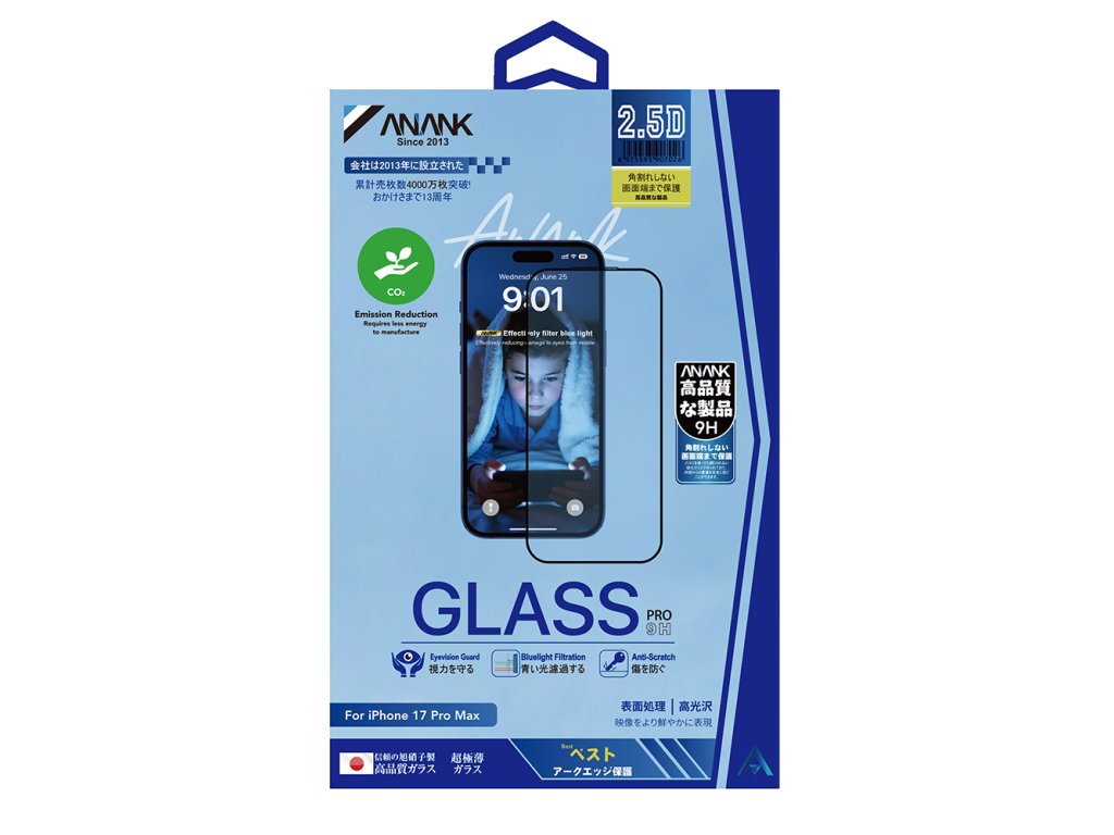 ANANK - 2.5D 5× zosilnené ochranné sklo s filtrom modrého svetla na iPhone 17 Air – čierne