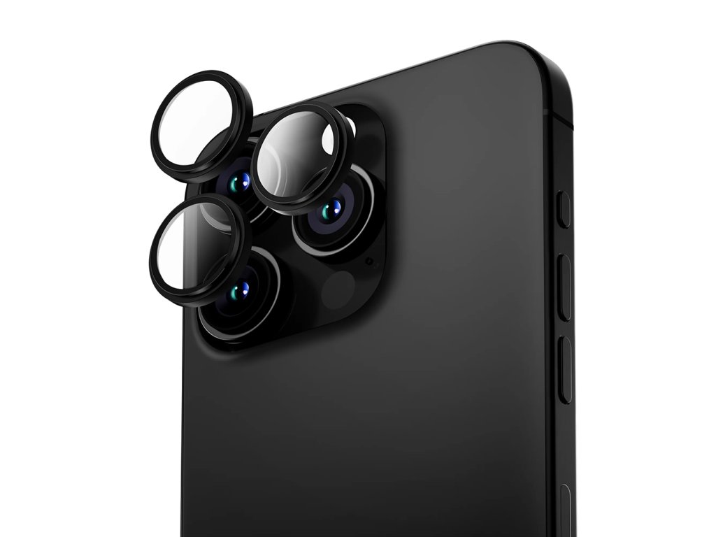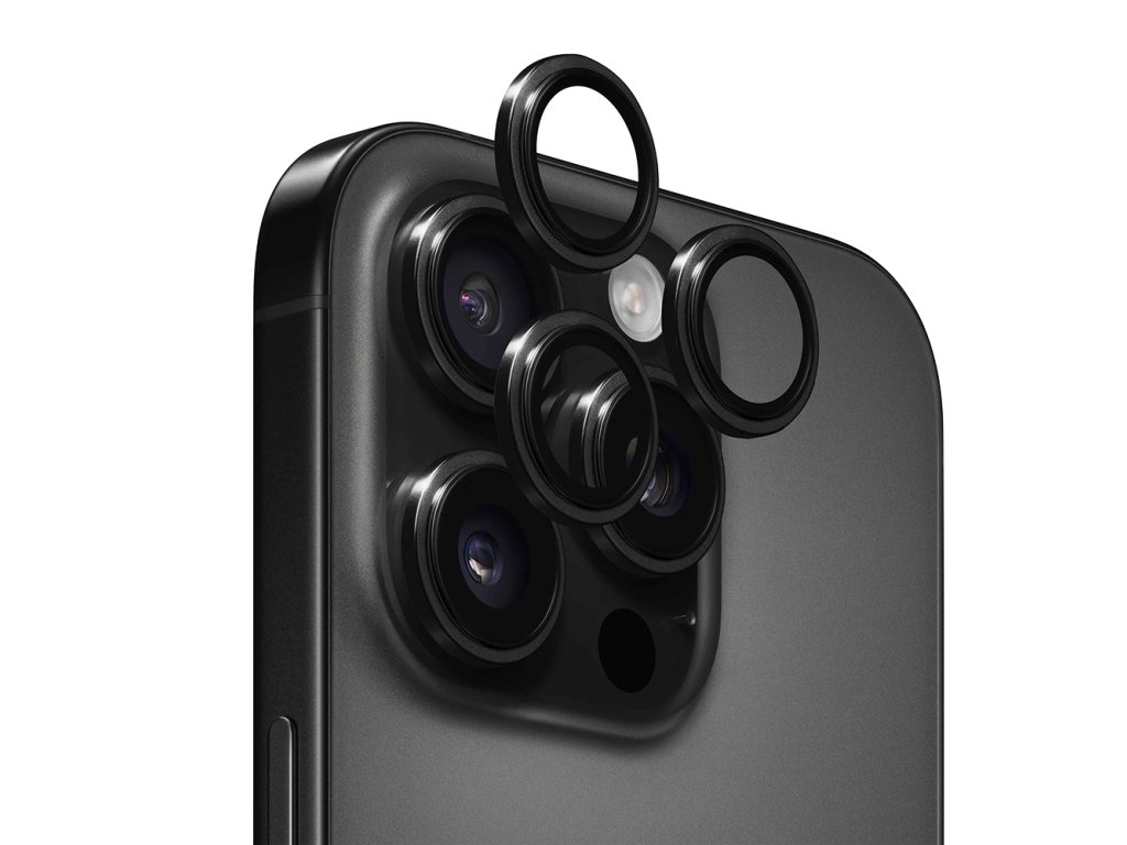 Ultra-odolný titánový rám chráni šošovky kamery smartfónu iPhone 16 Pro proti nárazom a poškriabaniu, bez pridania objemu alebo hmotnosti navyše.