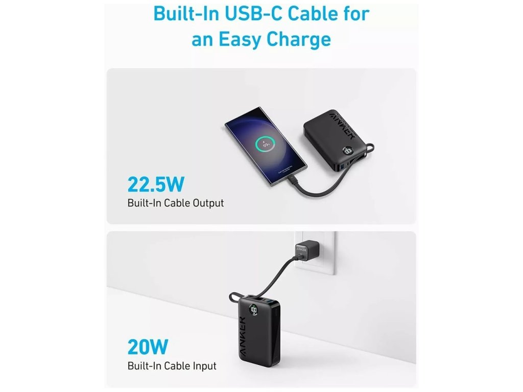 Anker power banka PowerCore 335 A1647G11 – 20 000 mAh, 22,5 W, USB-C, 2× USB-A, USB-C kábel, čierna