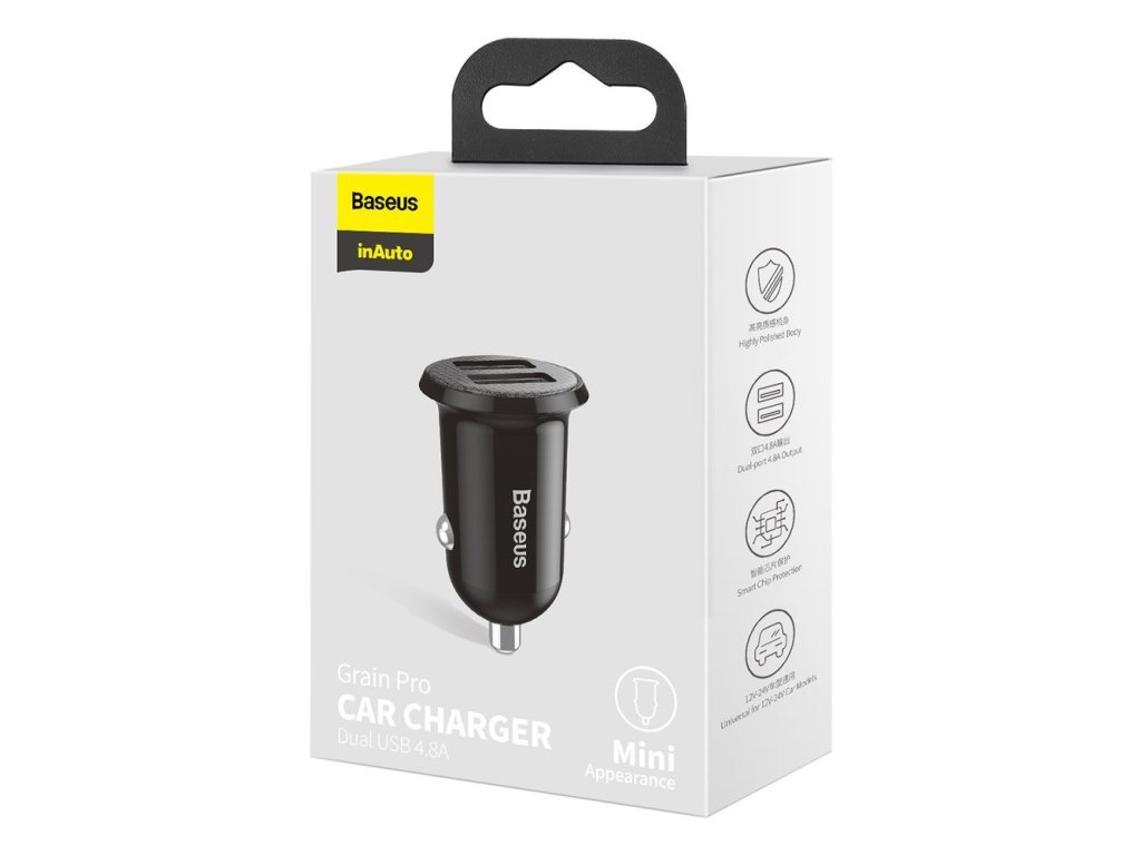 Baseus – Car Charger autonabíjačka 2× USB mini dizajn 4,8A – čierna