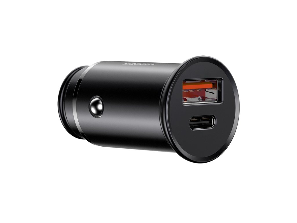 Baseus – Car Charger Circular Metal autonabíjačka USB-C + USB PPS 30W multi-protokol – čierna