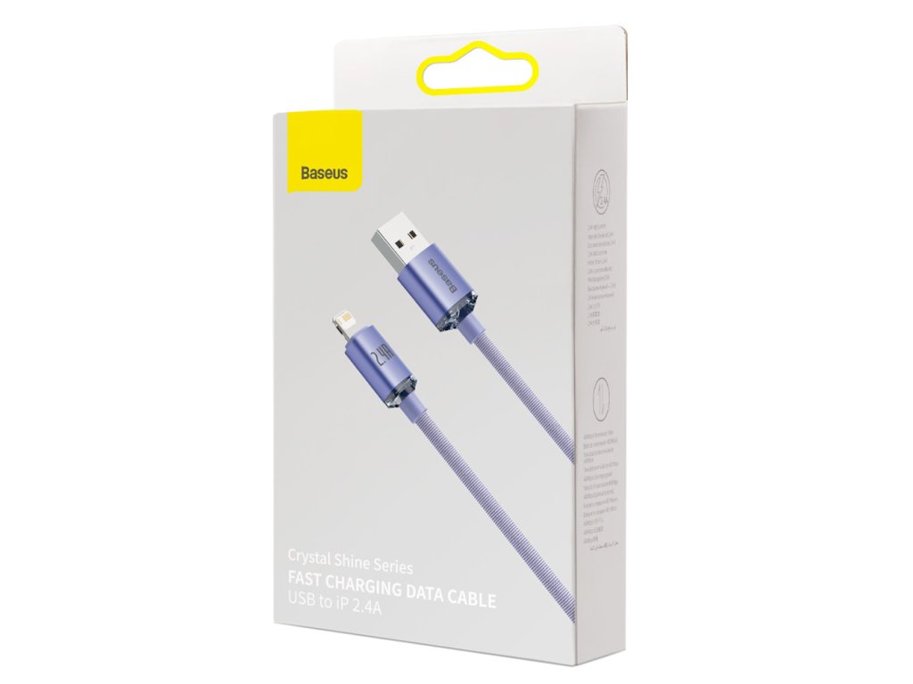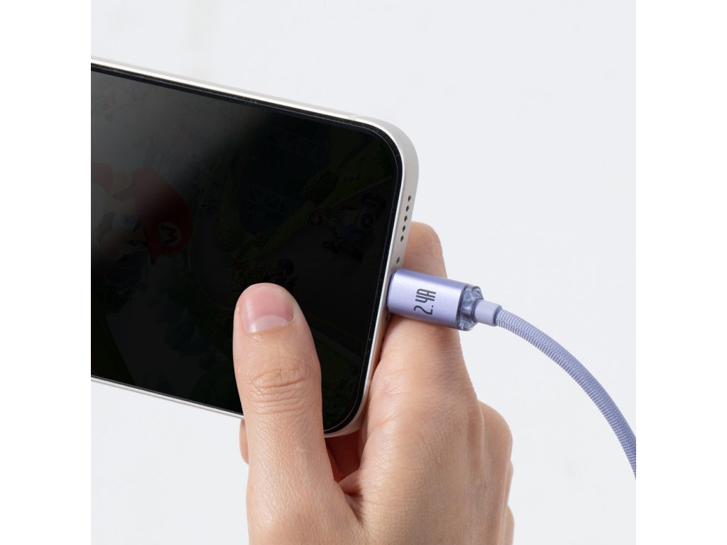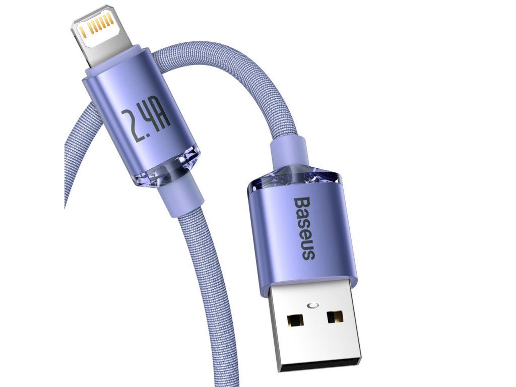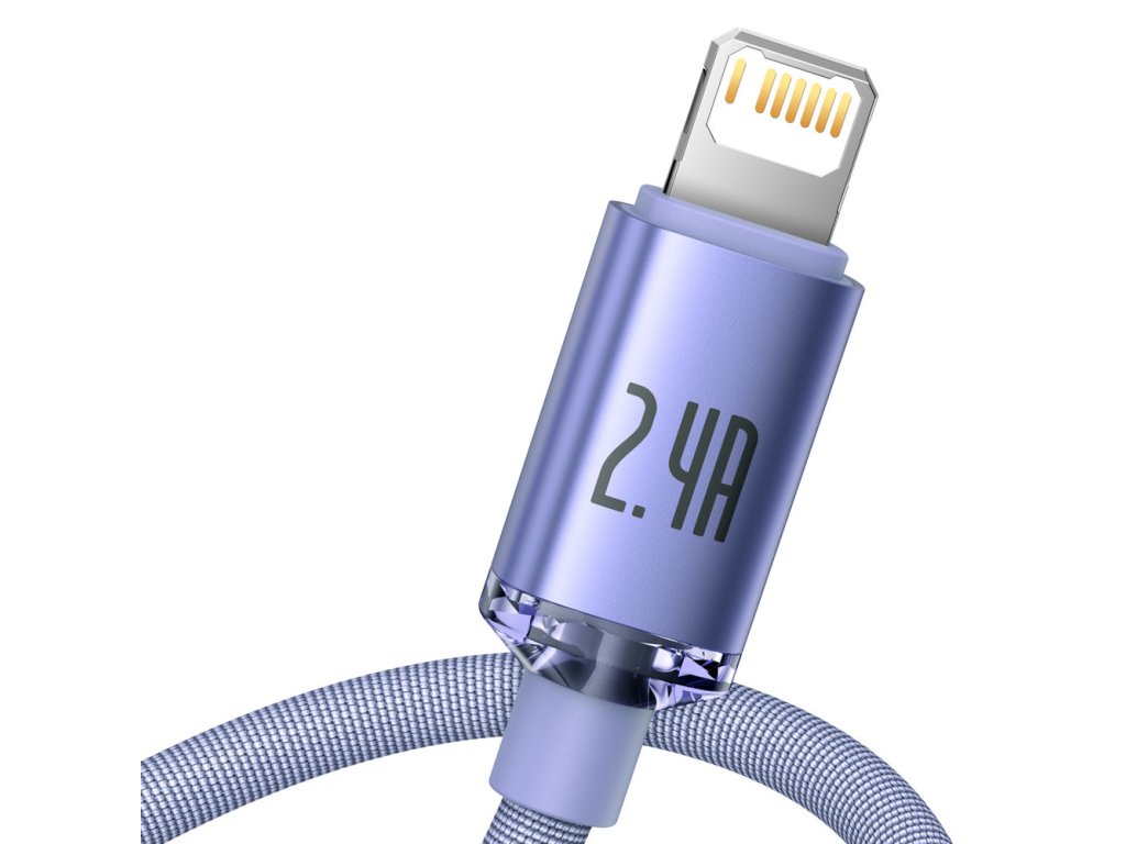 Baseus – Data Cable Crystal Shine dátový kábel USB → Lightning 2,4A 2 m nylonový oplet – fialový