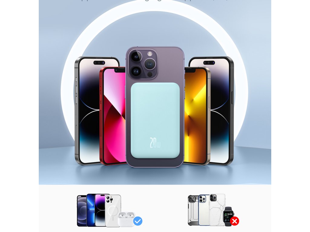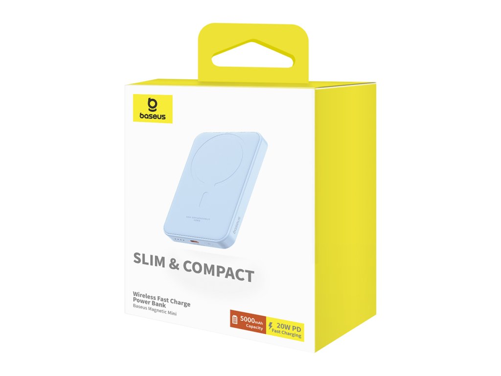 Baseus – Mini – powerbanka, USB-C, MagSafe nabíjanie, 20 W, 5000 mAh, kábel USB-C, 30 cm – modrá