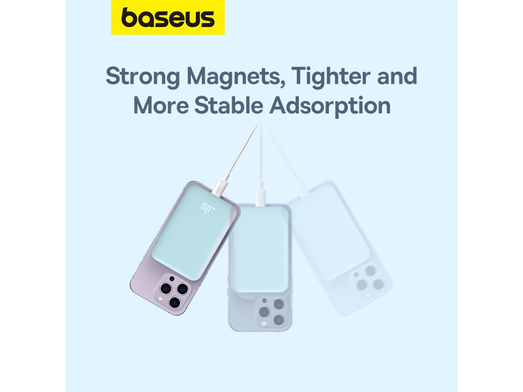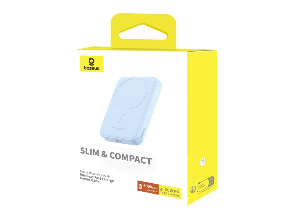 Baseus – Mini Air – powerbanka, USB-C, MagSafe nabíjanie, 20 W, 6000 mAh, kábel USB-C, 30 cm – modrá