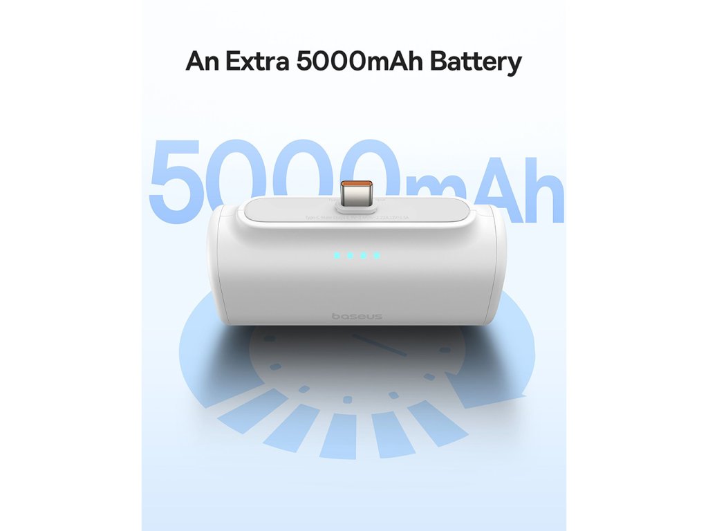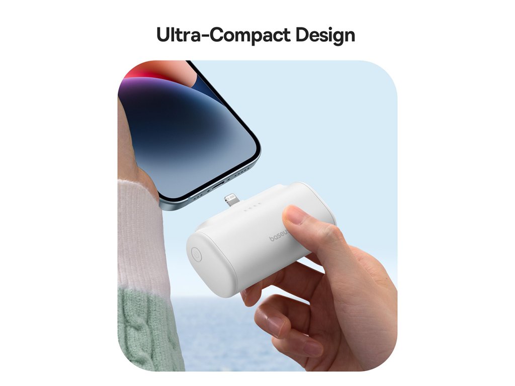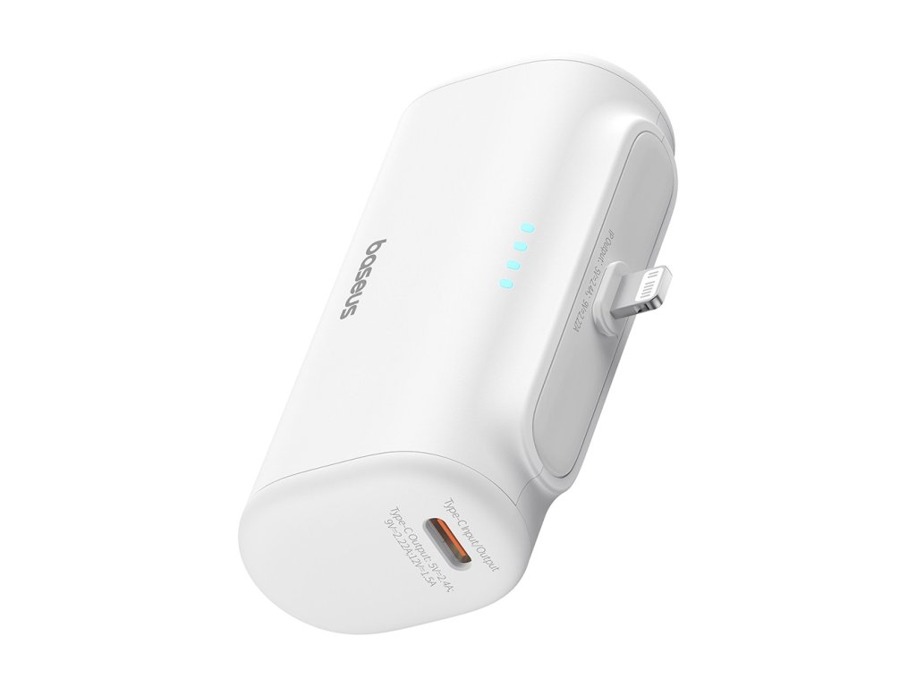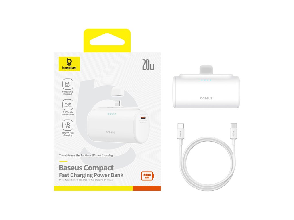 Baseus – powerbanka, kompaktná, Lightning, 20 W, 5000 mAh, kábel USB-C – biela