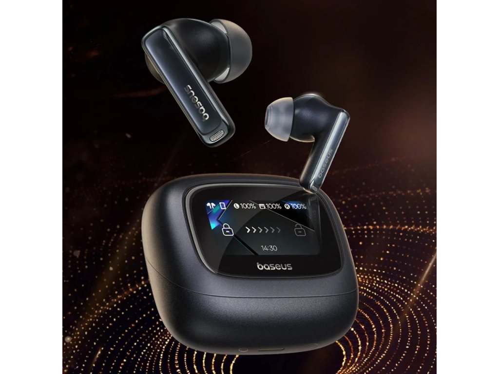 Baseus - Bezdrôtové slúchadlá M2s Ultra – True Wireless, Bluetooth 5.4, 4-mikrofónové ENC, inteligentný displej – čierne