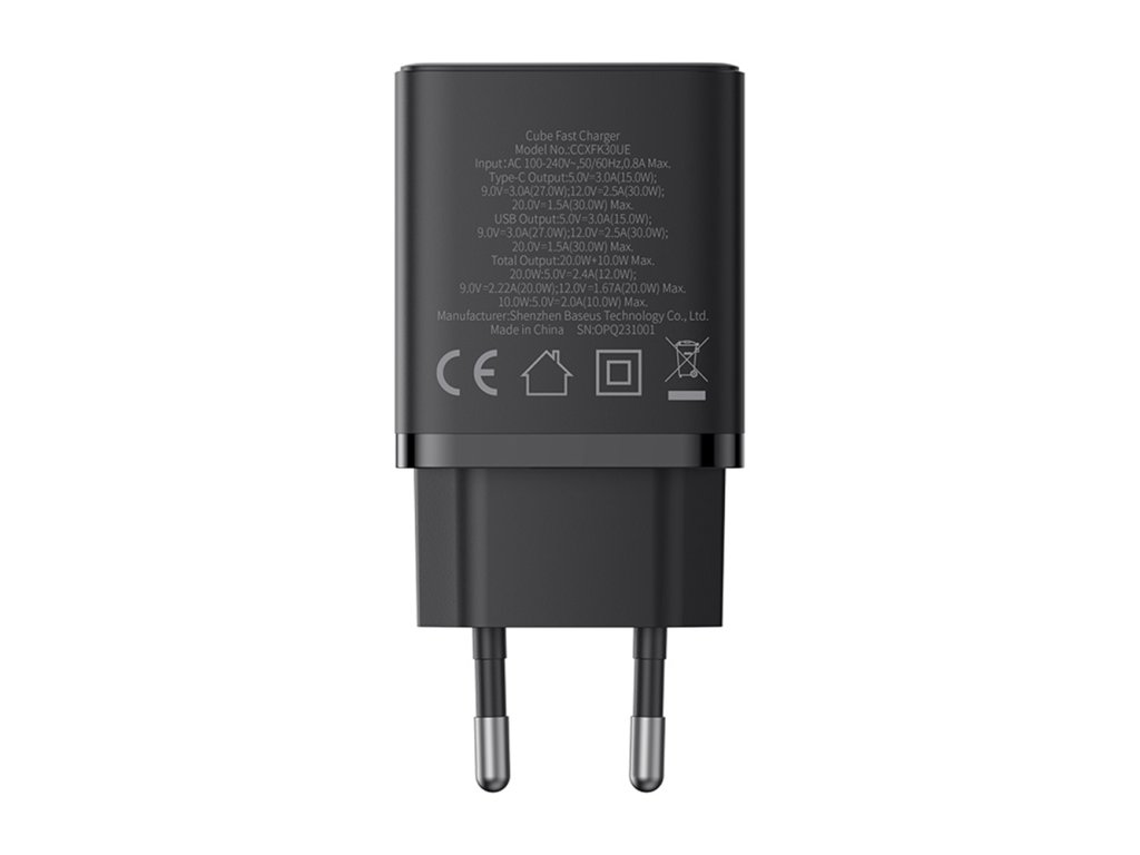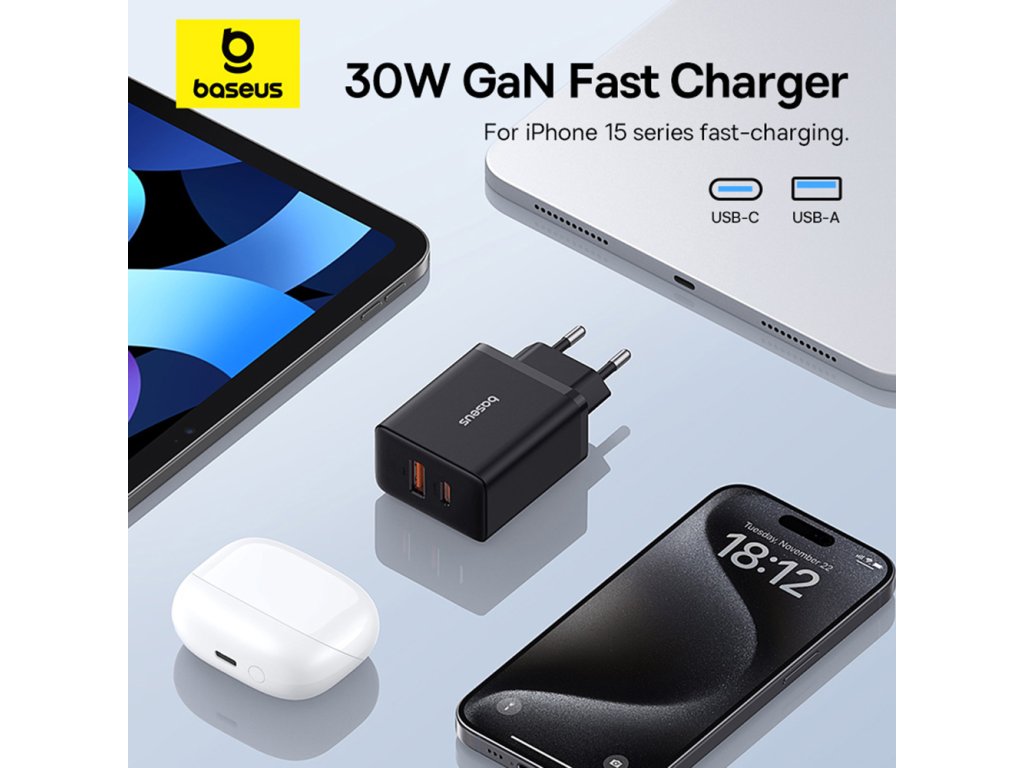 Baseus nabíjačka (P10111404113-00) – USB, USB-C, 30 W, rýchle nabíjanie, Cluster Black