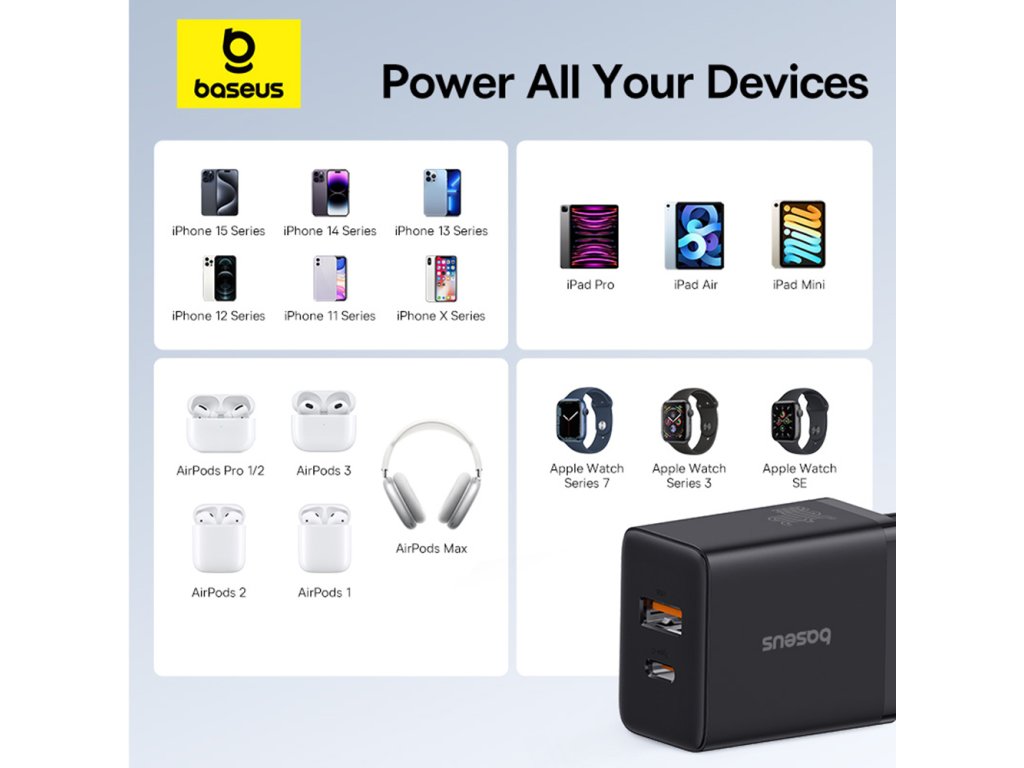 - Prečo kupovať viacero adaptérov pre každé zariadenie, ktoré vlastníte. Teraz s touto nabíjačkou od Baseus môžete naraz nabíjať telefón aj tablet. Úžasné, však? Neváhajte. Objednajte si teraz túto nabíjačku Fast Charge!