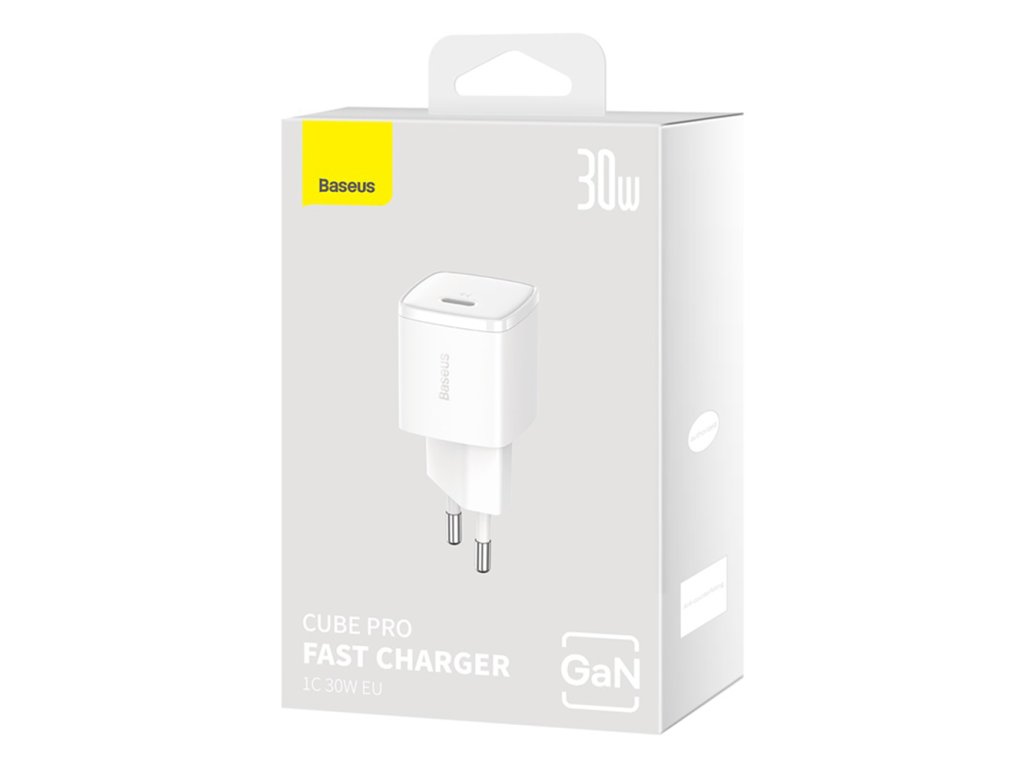 Baseus - Wall Charger Cube Pro sieťová nabíjačka (rýchlonabíjanie, USB-C, 30W) - biela