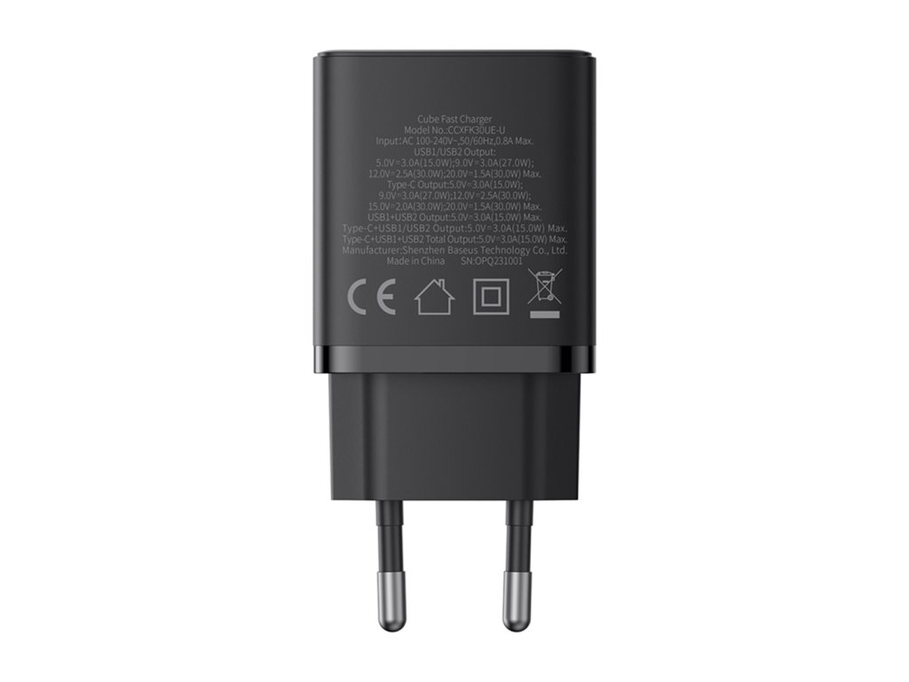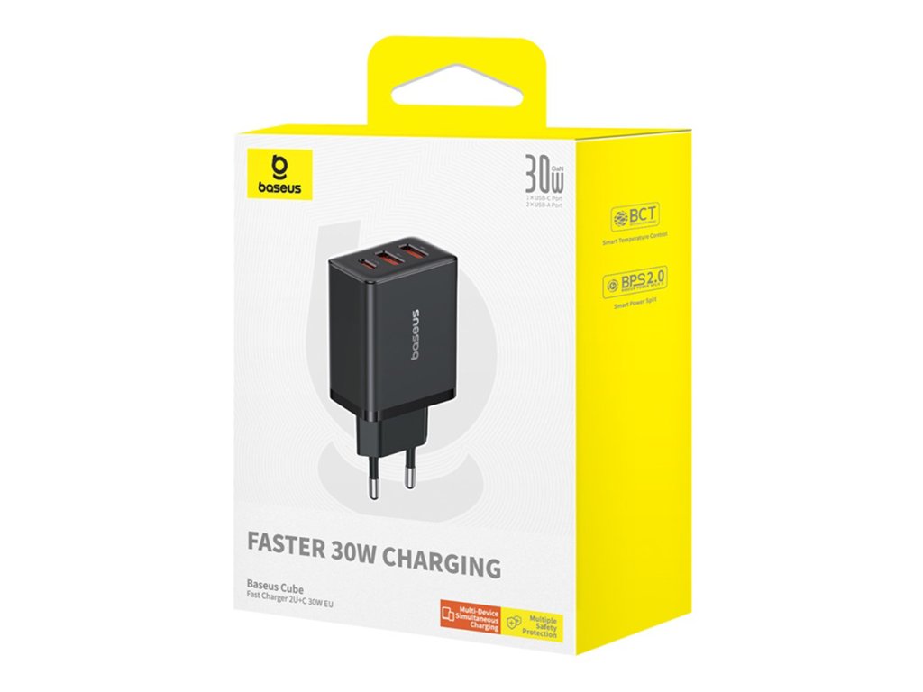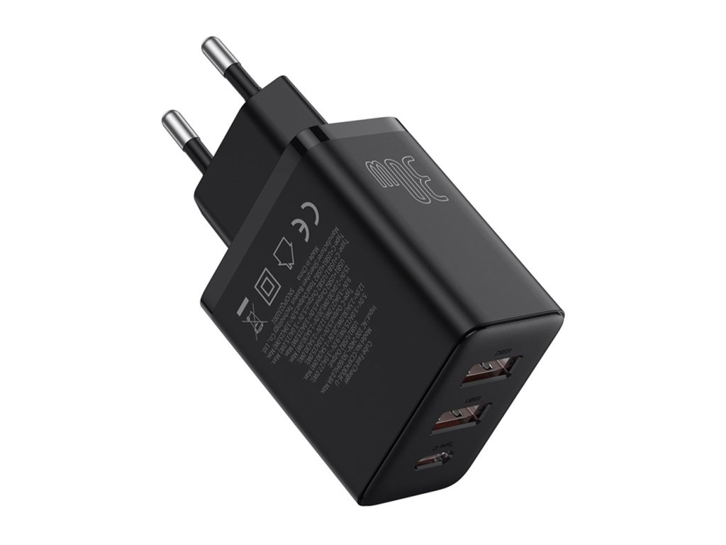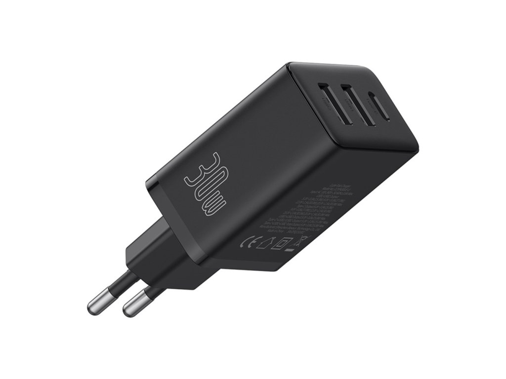 Baseus - Wall Charger sieťová nabíjačka (GaN technológia, 2× USB, USB-C, rýchlonabíjanie, 30W) - čierna Cluster Black