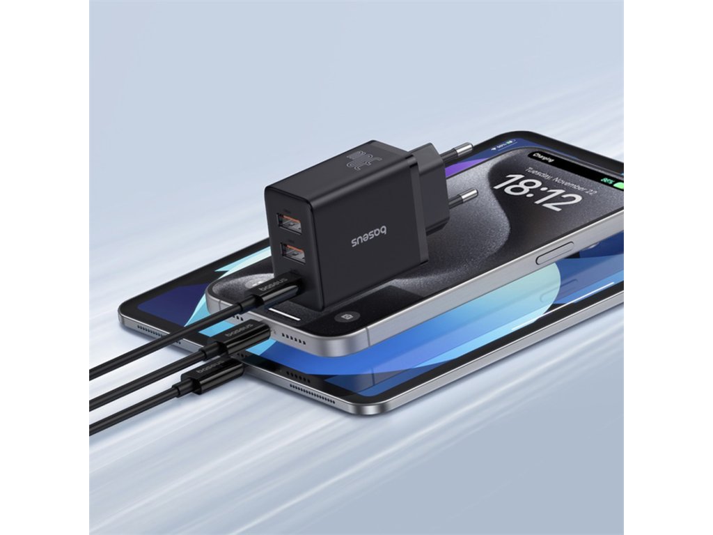 Hľadáte nabíjačku do zásuvky s rýchlym nabíjaním? ⚡ Zamilujete si tento adaptér od Baseus, ktorý dokáže napájať tri zariadenia súčasne. Objednajte si ho práve teraz!