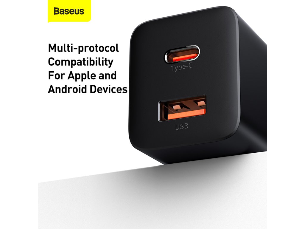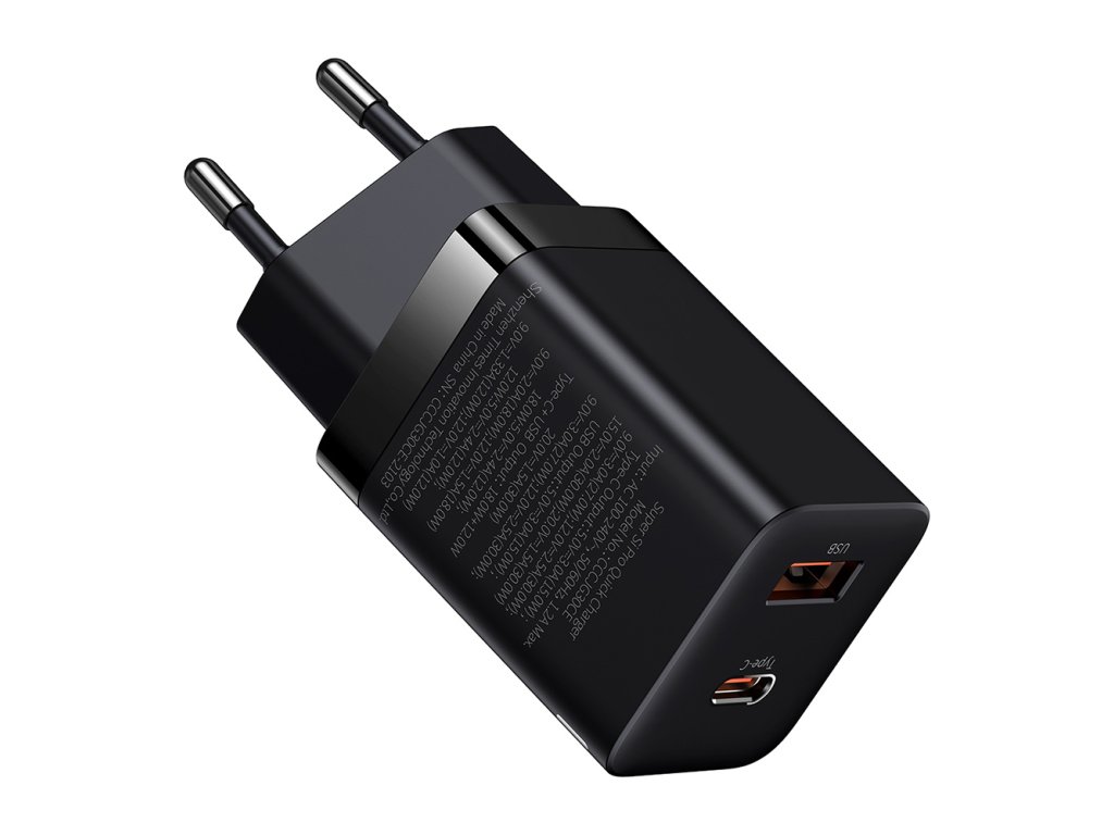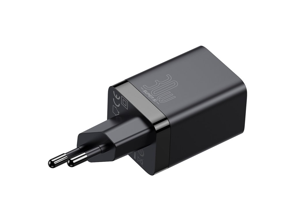 Baseus - Wall Charger Super Si Pro sieťová nabíjačka (USB-C + USB, rýchlonabíjanie, 30W) - čierna