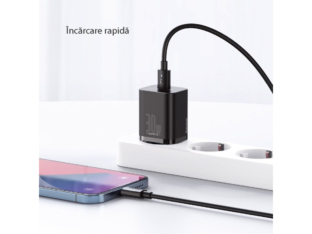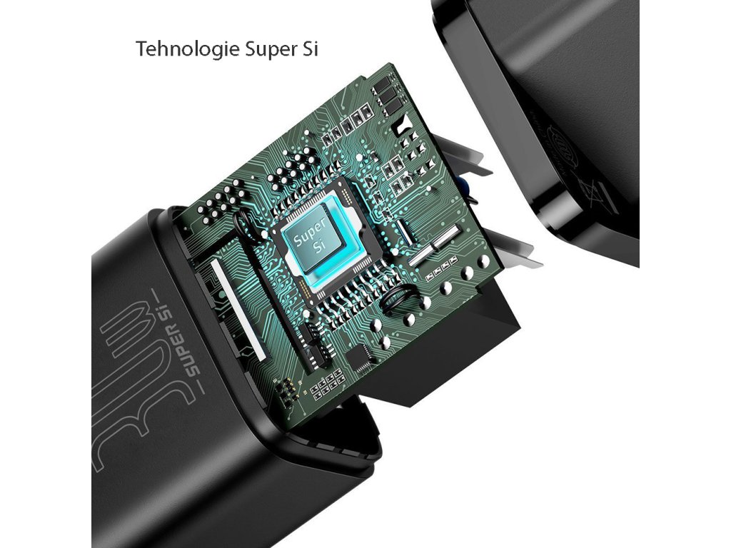 Baseus - Wall Charger Super Si sieťová nabíjačka (USB-C, rýchlonabíjanie, 30W) - čierna