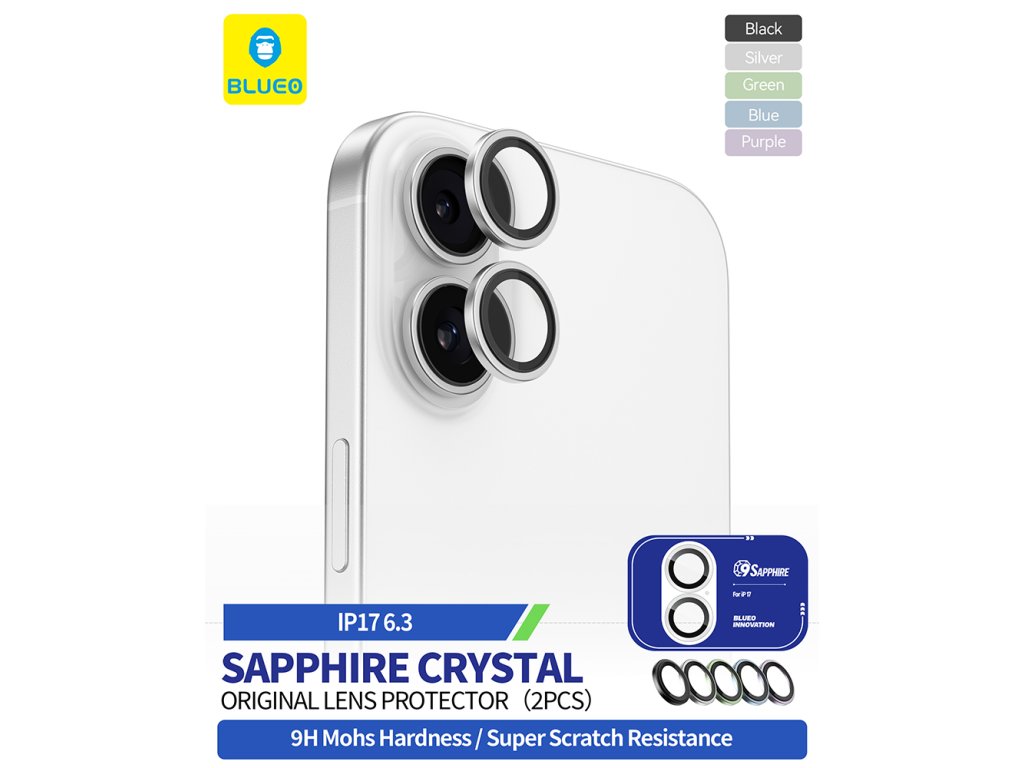 Blueo – Sapphire Crystal Original ochranné sklo objektívu na iPhone 17 – svetlomodré