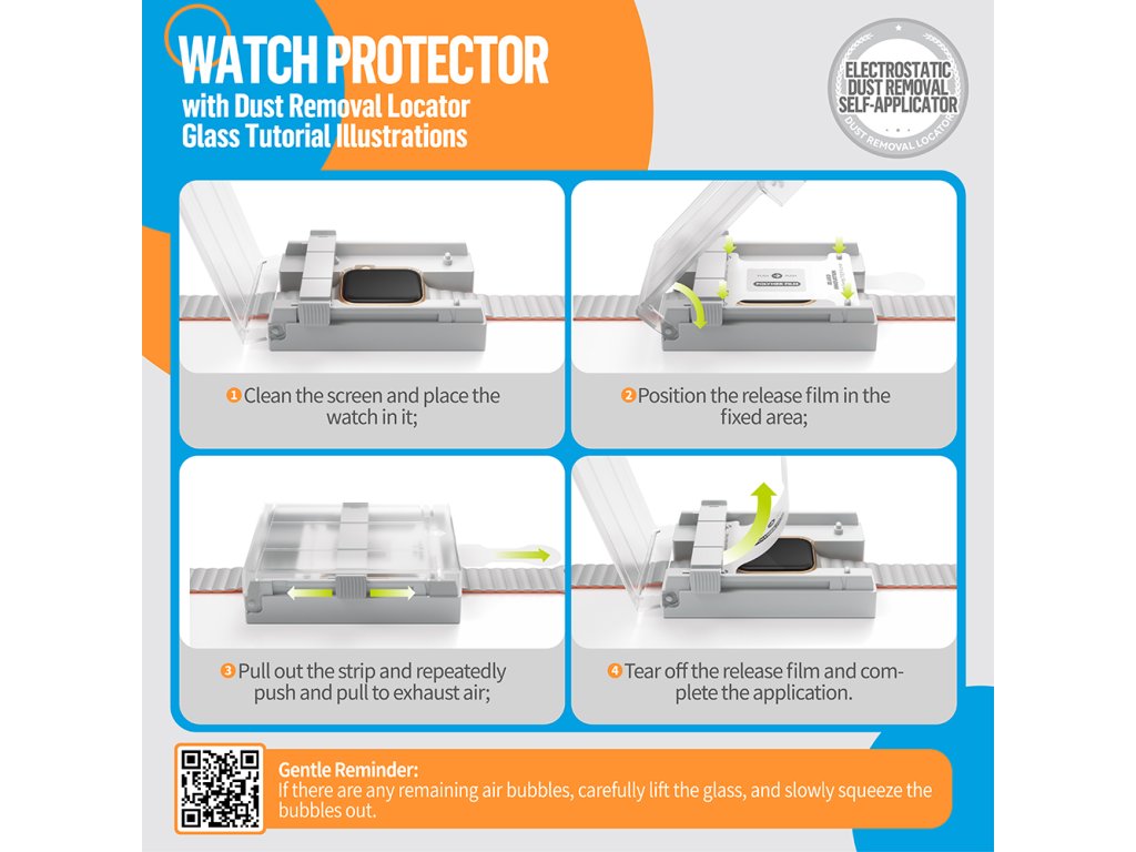 Vďaka systému Dust Removal Locator je aplikácia fólie na inteligentné hodinky rýchla a jednoduchá, eliminujúc riziko vzniku prachu alebo vzduchových bublín.