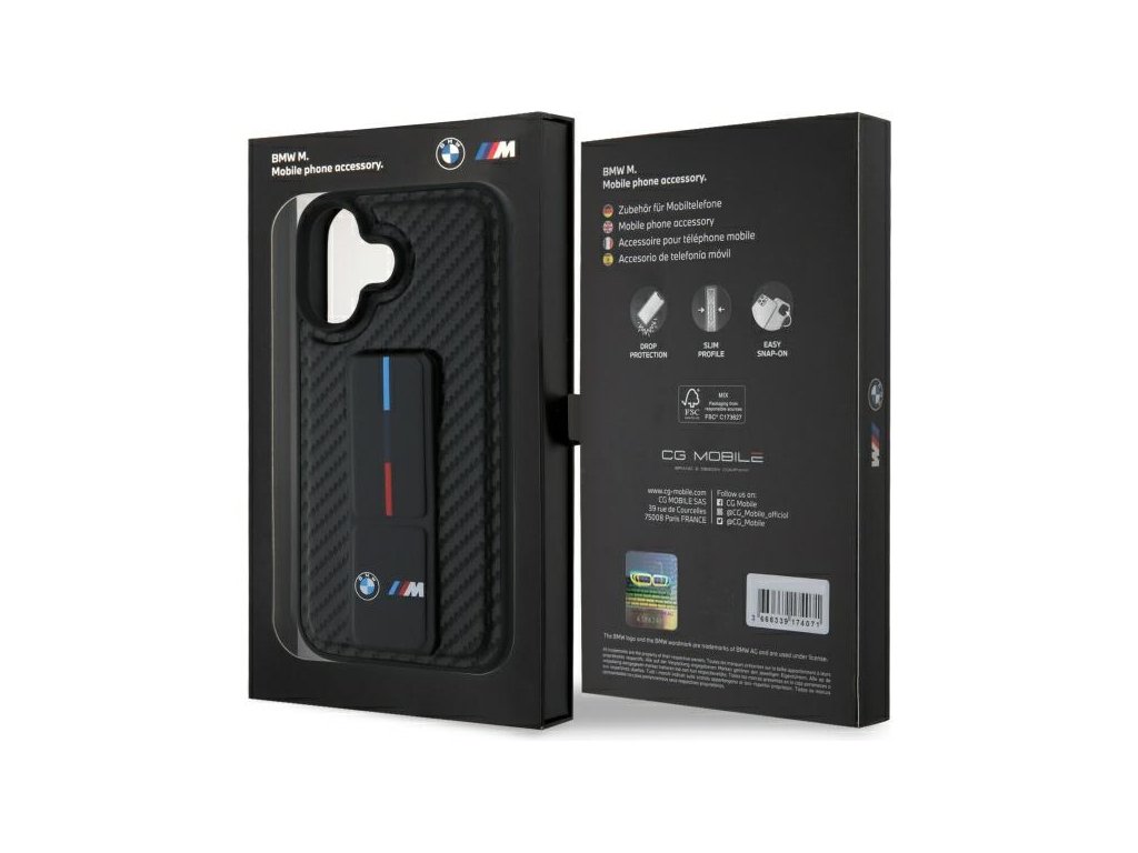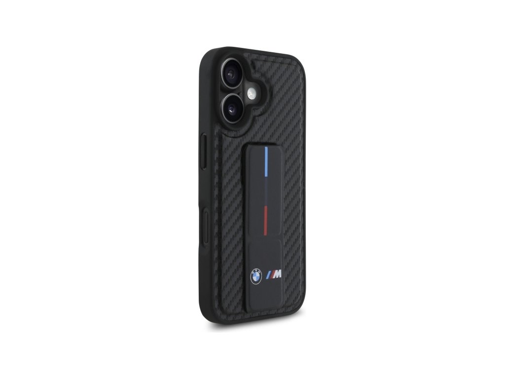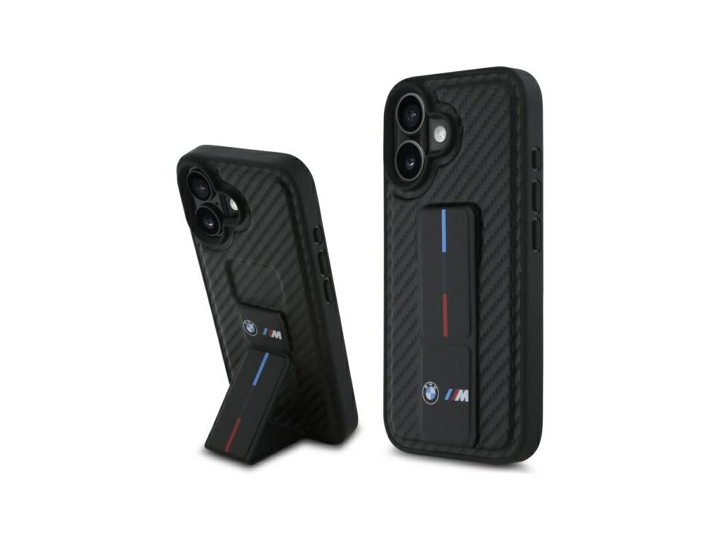 BMW - Leather M Grip Stand Smooth and Carbon (BMHCP16SGSPCCK) - iPhone 16 - Black