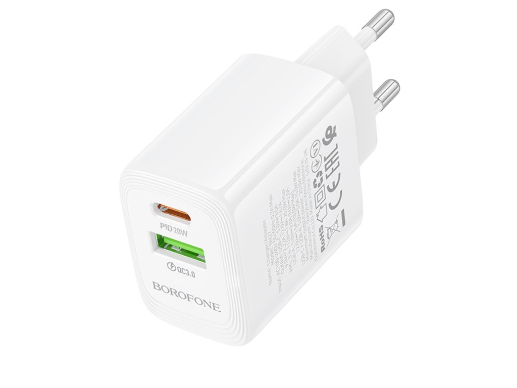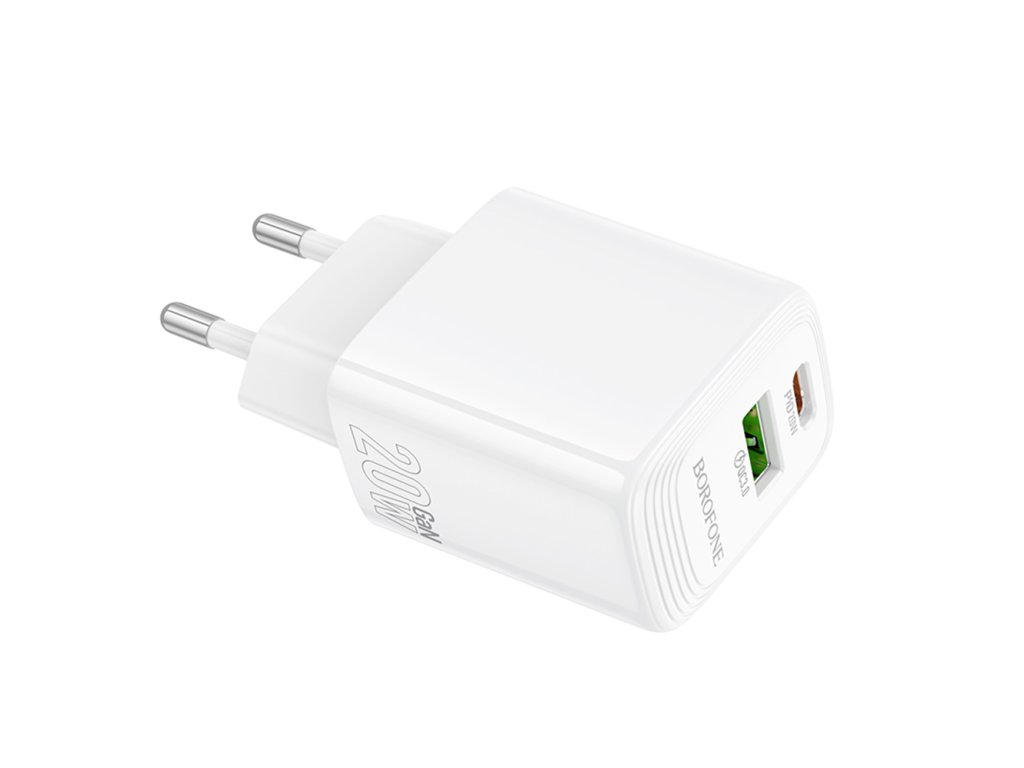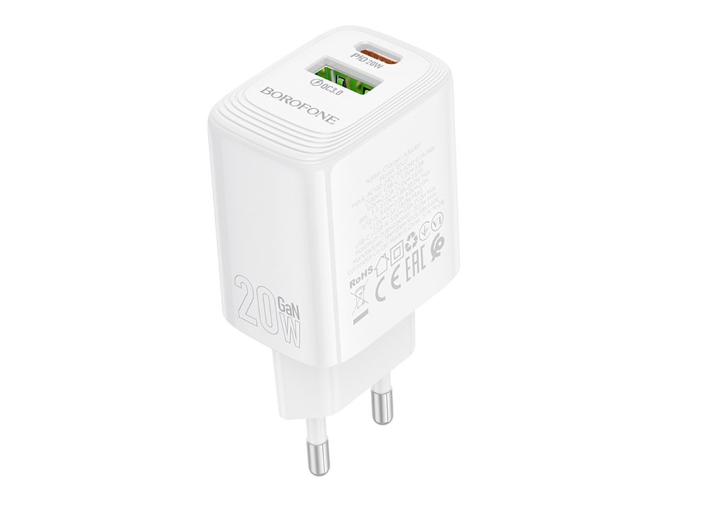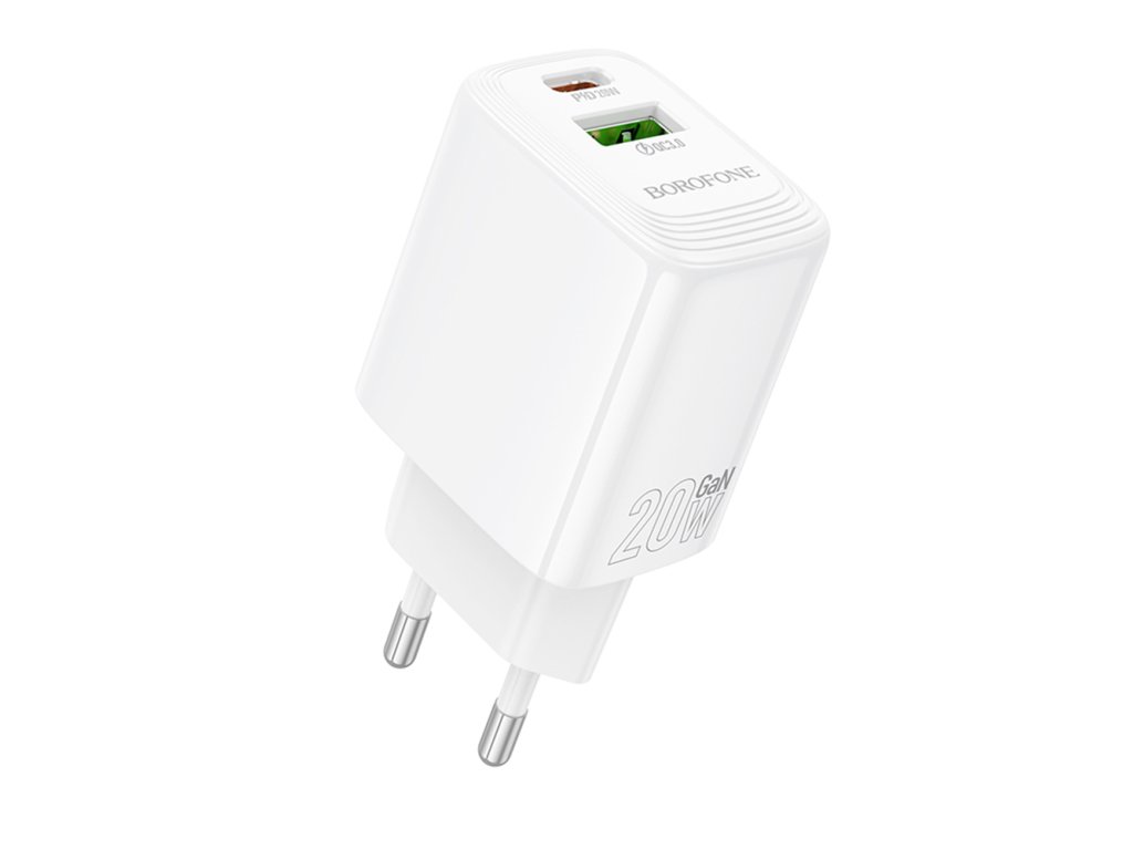 Borofone - Wall Charger Fuente BN27 sieťová nabíjačka (dual port, USB + USB-C, PD20W, QC3.0, GaN technológia) - biela