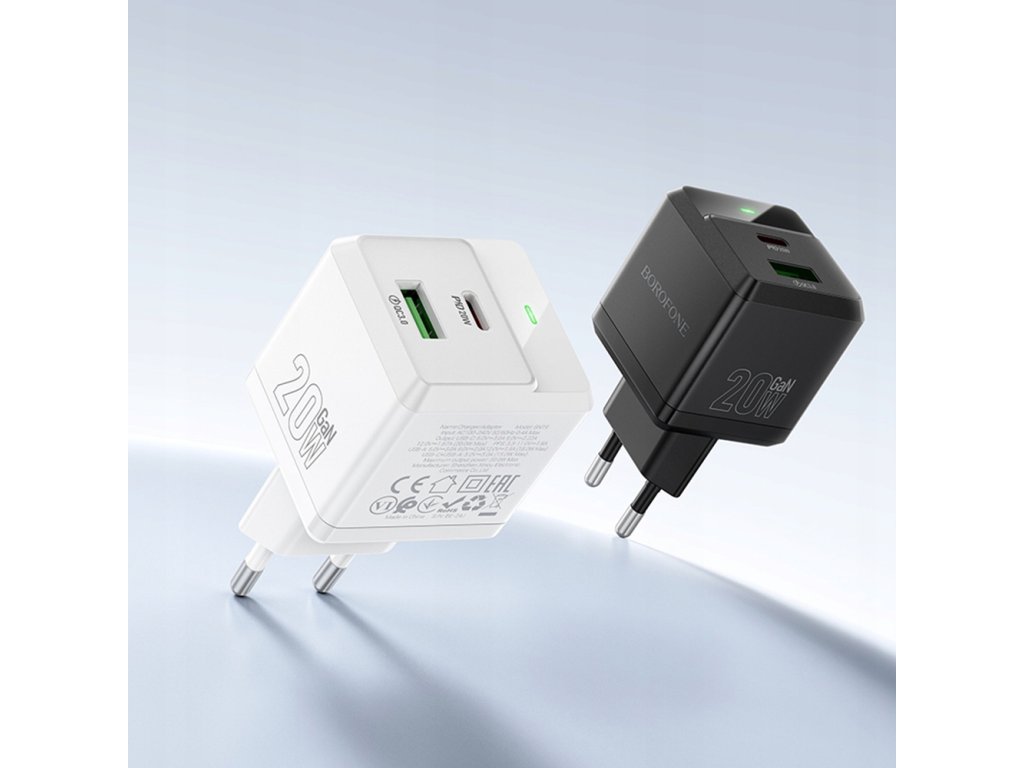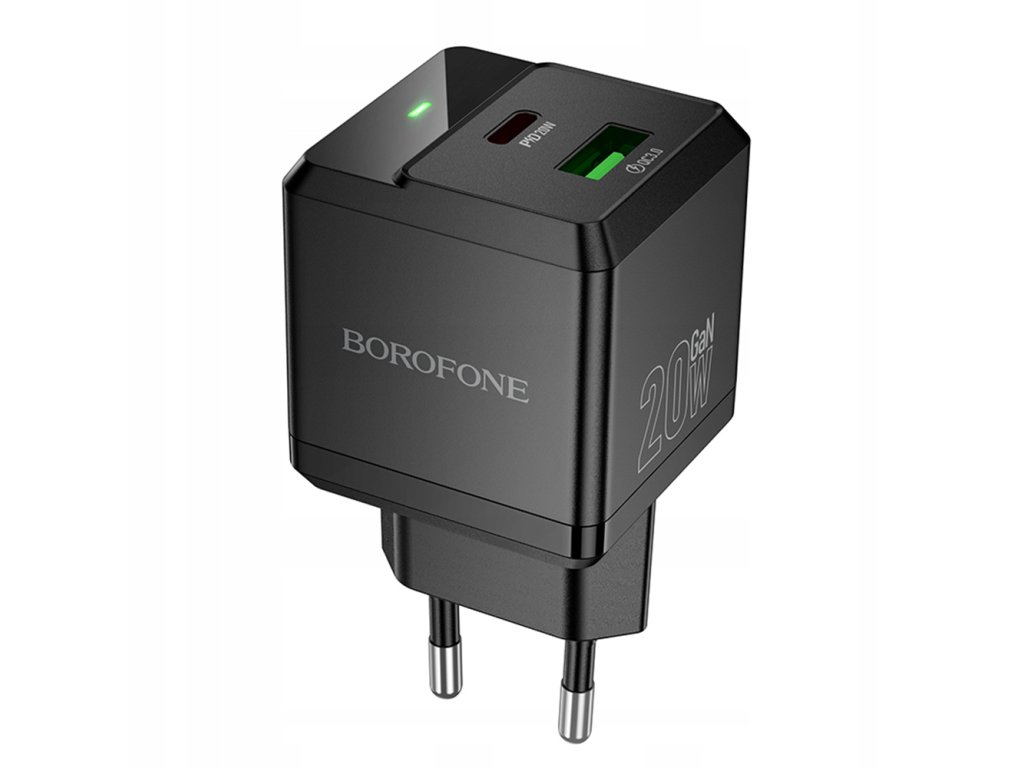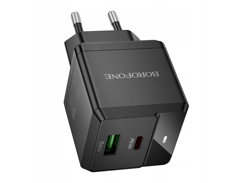 Borofone - Wall Charger Intenso BN19 sieťová nabíjačka (dual port, USB + USB-C, PD20W, QC3.0, 5V/3A) - čierna