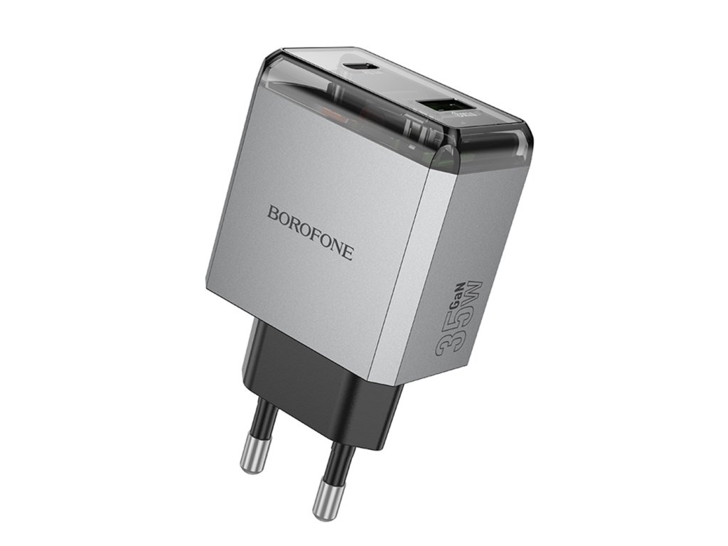 Borofone - Wall Charger Lena (BN20) - Dual Port, USB-C + USB-A, PD35W, QC3.0, Flame-Retardant PC, 5V/3A - Metal Gray