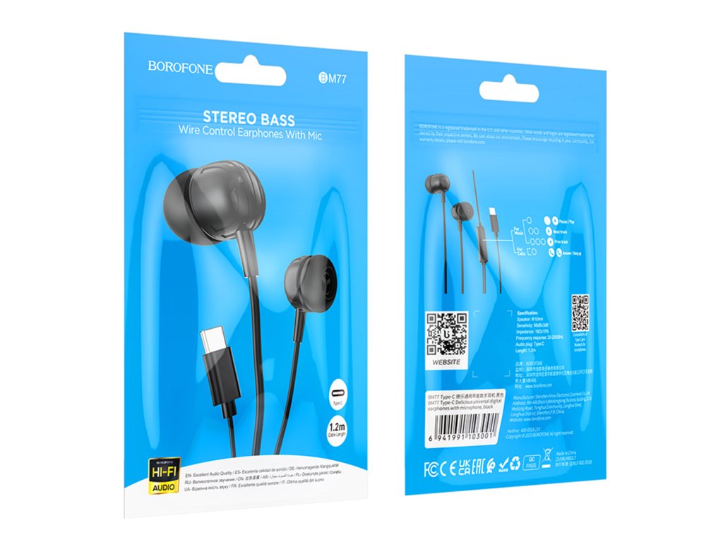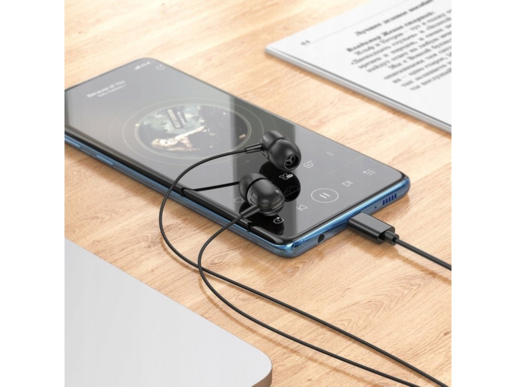 Borofone - Wired Earphones Delicious BM77 káblové slúchadlá (USB-C, mikrofón, stereo bass, Hi-Fi zvuk, univerzálne, 1.2 m) - čierne