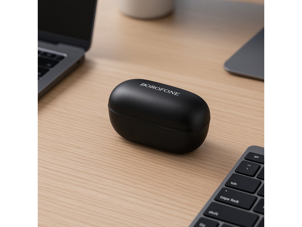 Borofone - Wireless Earbuds Joyful FQ10 bezdrôtové slúchadlá (Bluetooth 5.4, 300 mAh, TWS, prepínanie skladieb, Siri aktivácia) - čierne