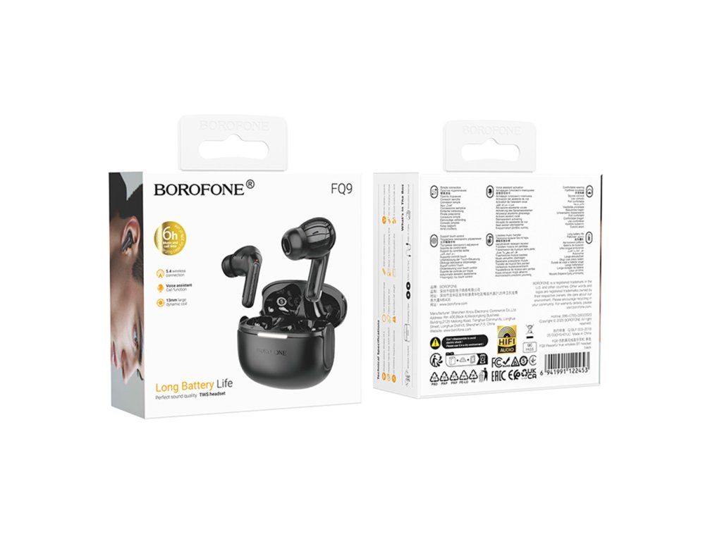 Borofone - Wireless Earbuds Peaceful (FQ9) - Bluetooth V5.4, 300mAh, True Wireless, Touch Control - Black