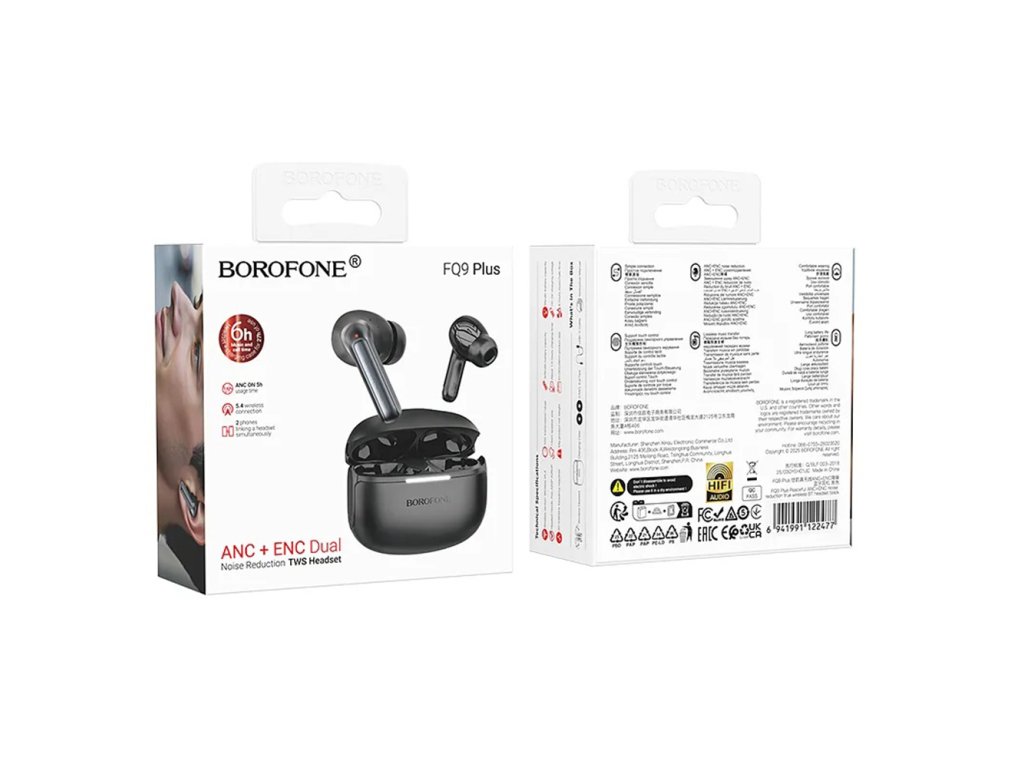 Borofone - Wireless Earbuds Peaceful FQ9 Plus bezdrôtové slúchadlá (Bluetooth 5.4, ANC + ENC, 300 mAh, dotykové ovládanie) - čierne