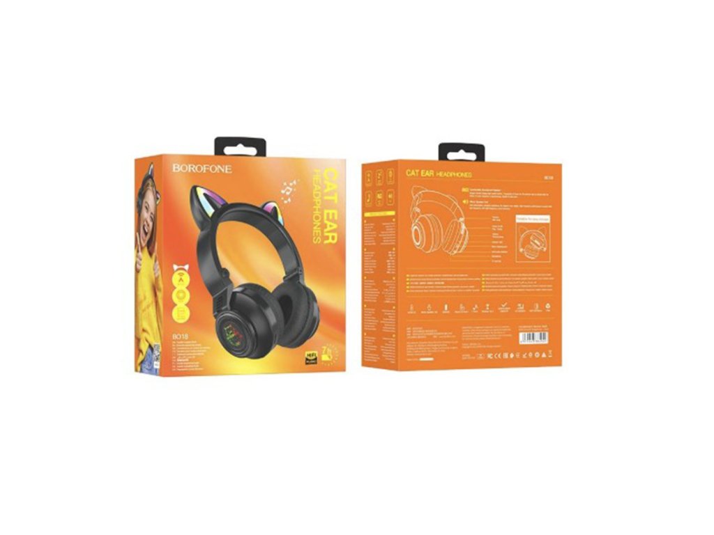 Borofone - Wireless Headphones Cat Ear BO18 bezdrôtové slúchadlá (Bluetooth 5.0, 400 mAh, ergonomický dizajn, LED svetlá) - čierne