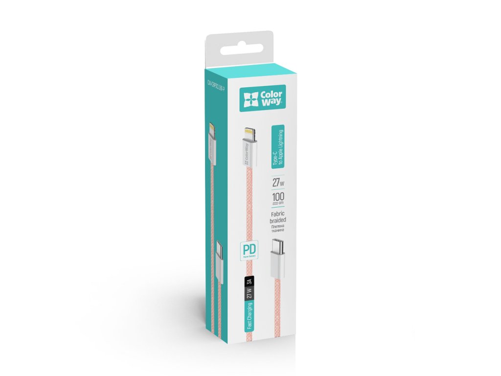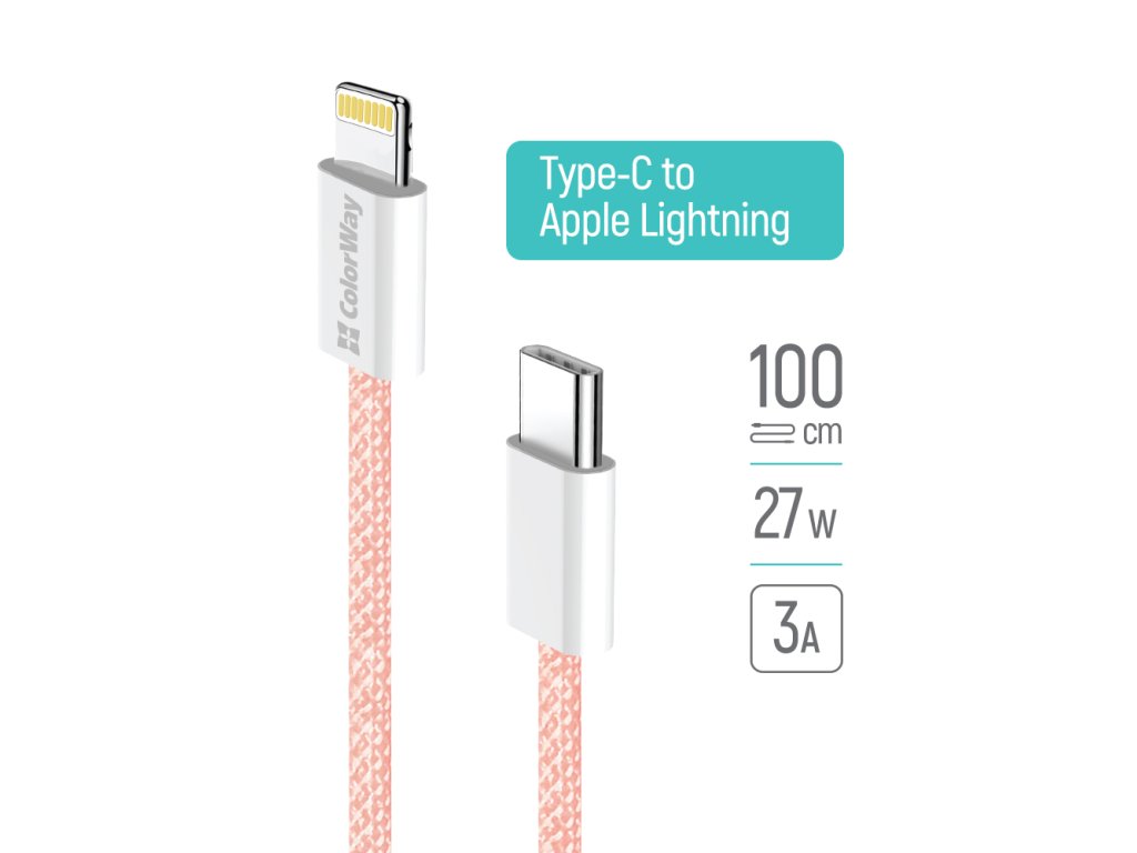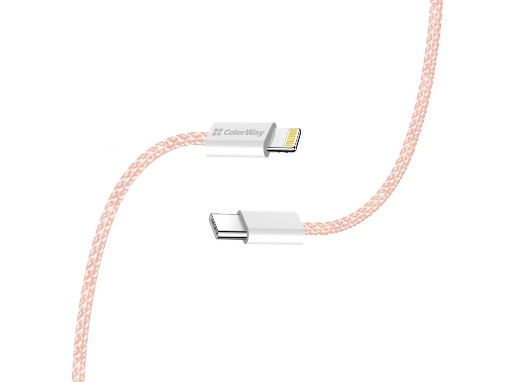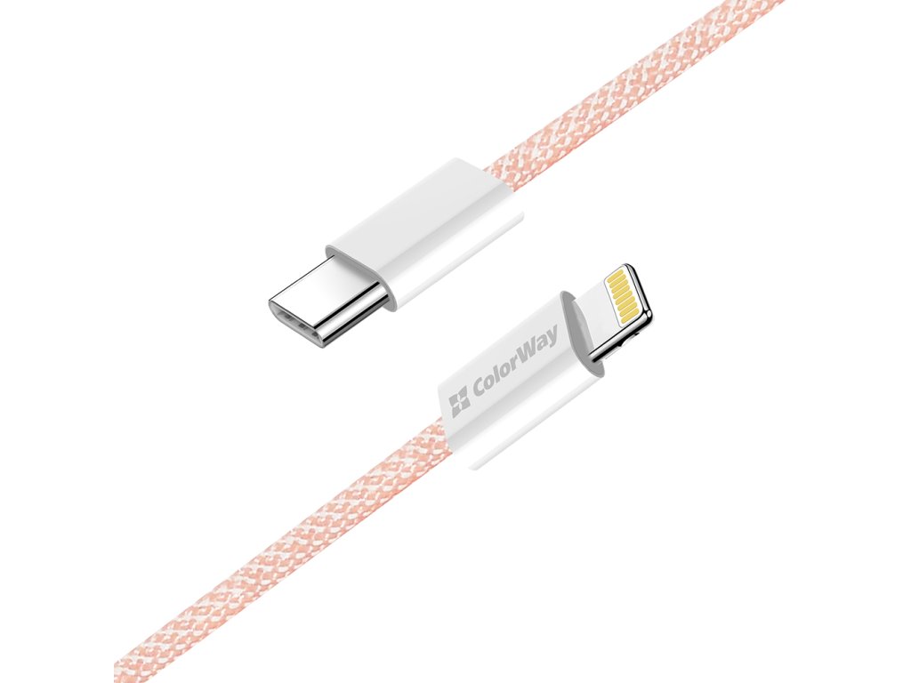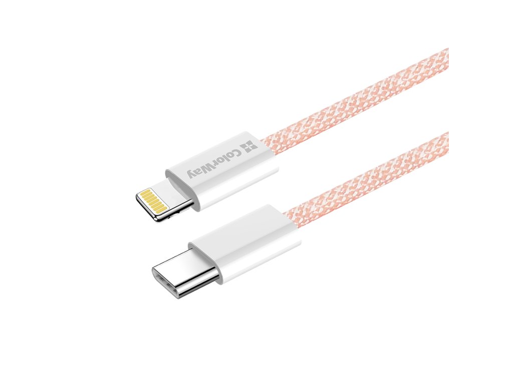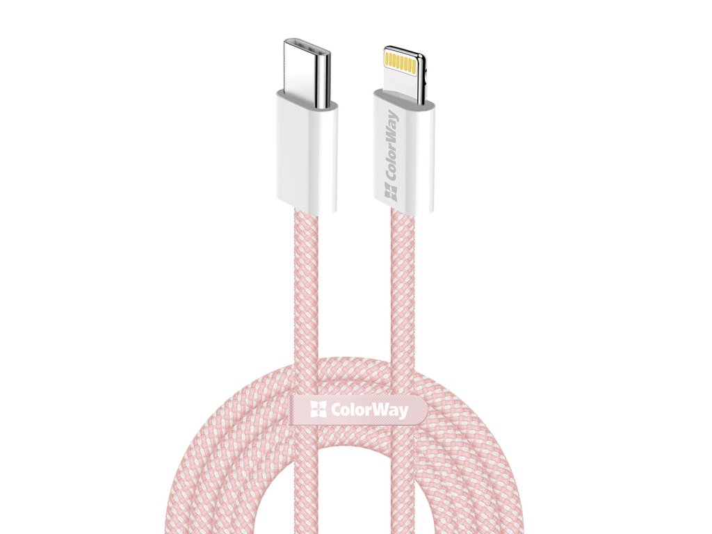 ColorWay – Data Cable dátový kábel USB-C → Apple Lightning PD 27W 3A nylonový 1 m – ružový